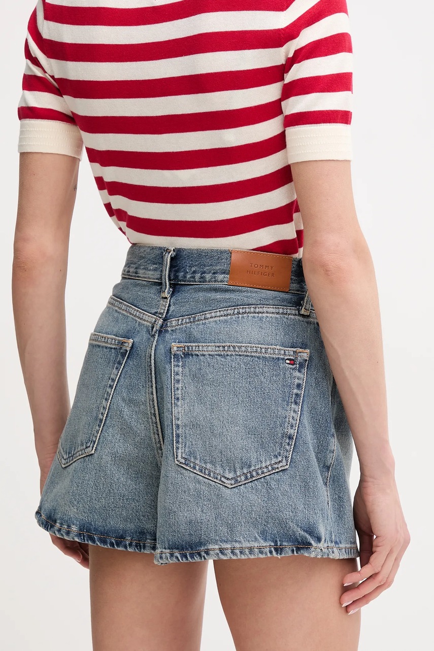 Tommy Hilfiger szorty jeansowe damskie kolor niebieski gładkie high waist WW0WW44384