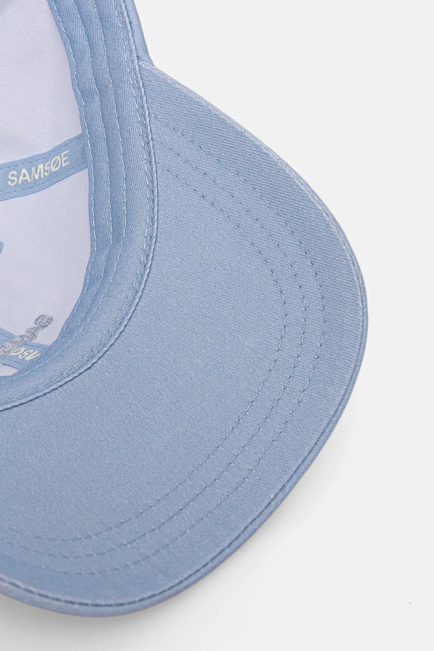 Samsoe Samsoe czapka z daszkiem bawełniana SAADDIE kolor niebieski z aplikacją U10000001