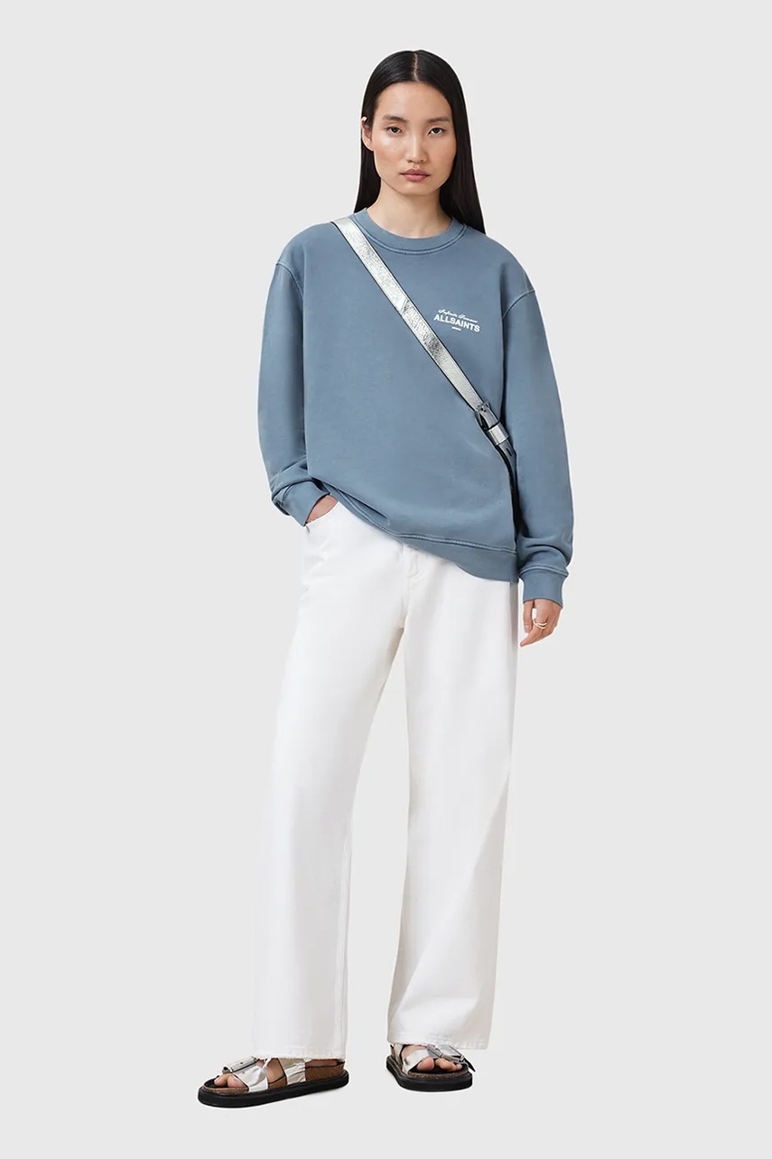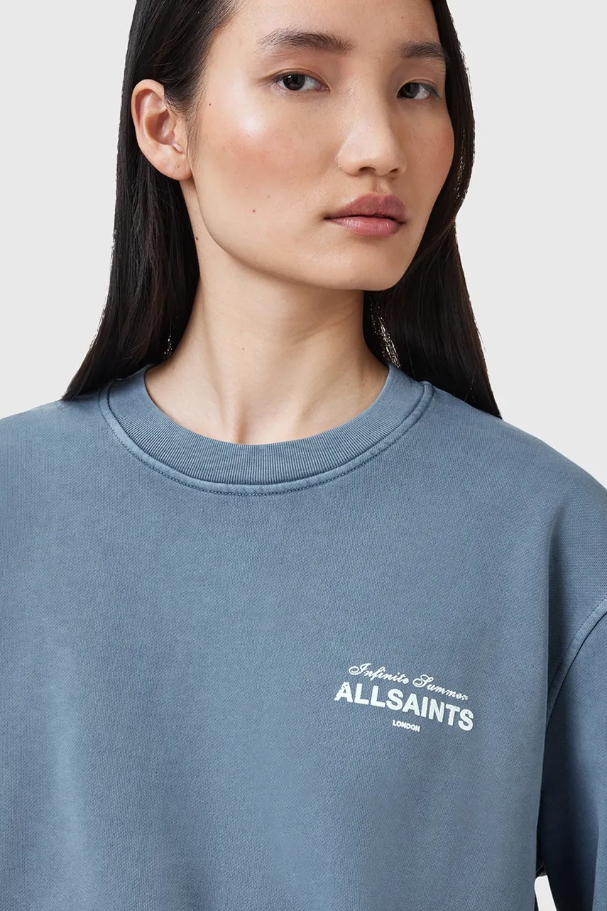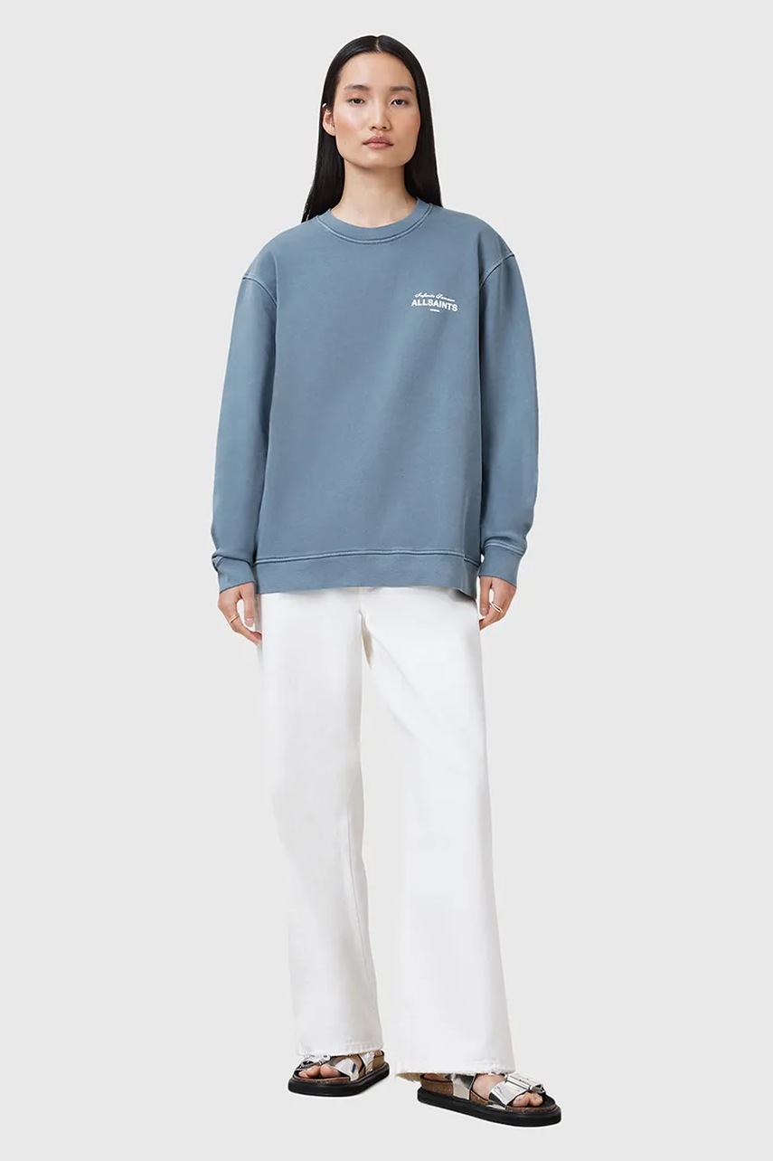 AllSaints bluza bawełniana SOLEIL damska kolor niebieski z nadrukiem W222JC