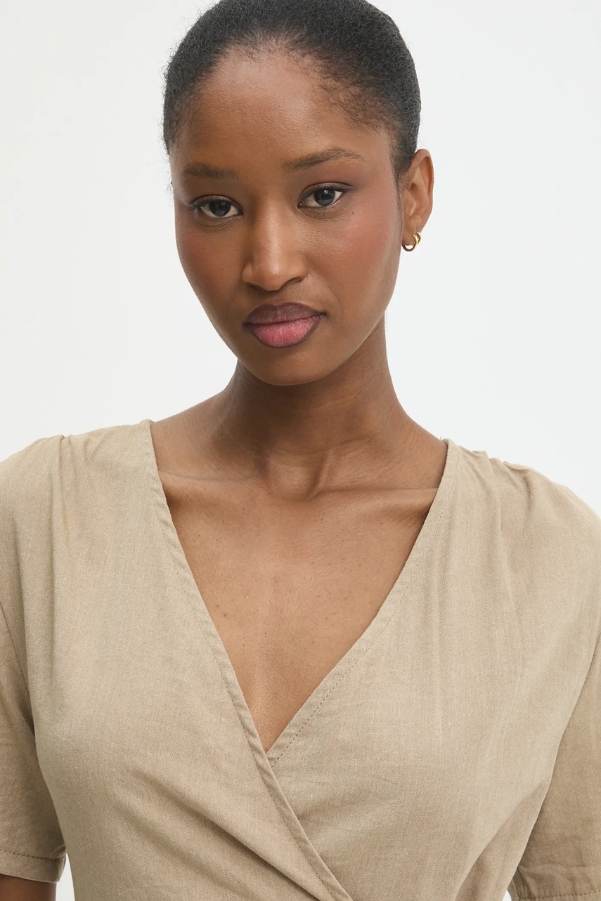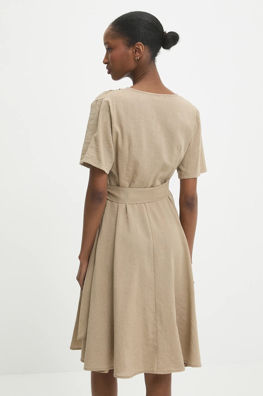 Answear.LAB sukienka lniana kolor brązowy mini rozkloszowana