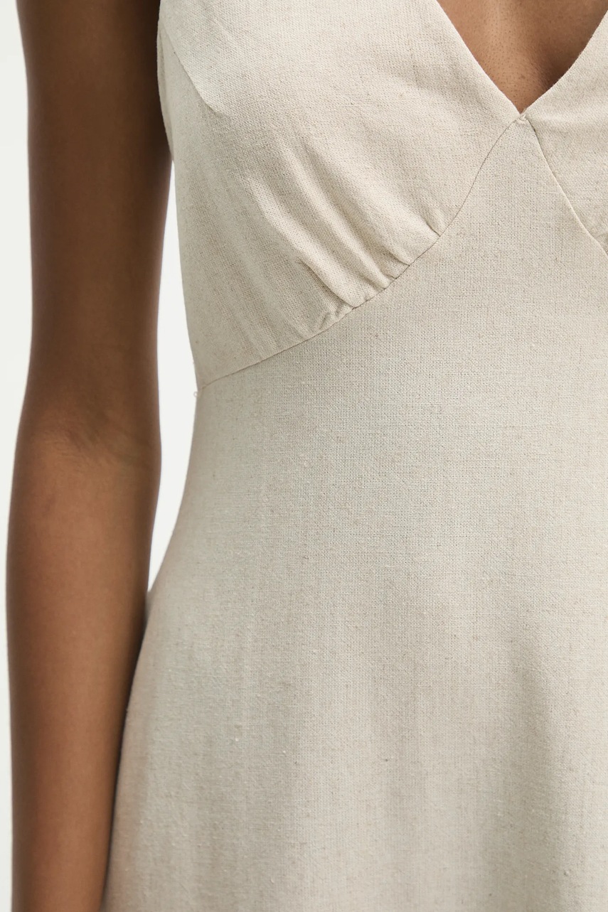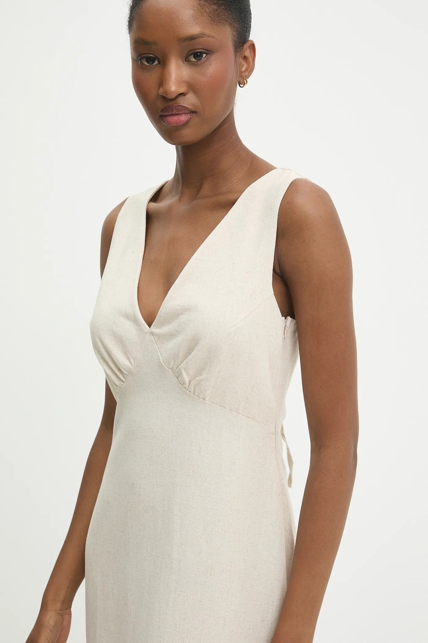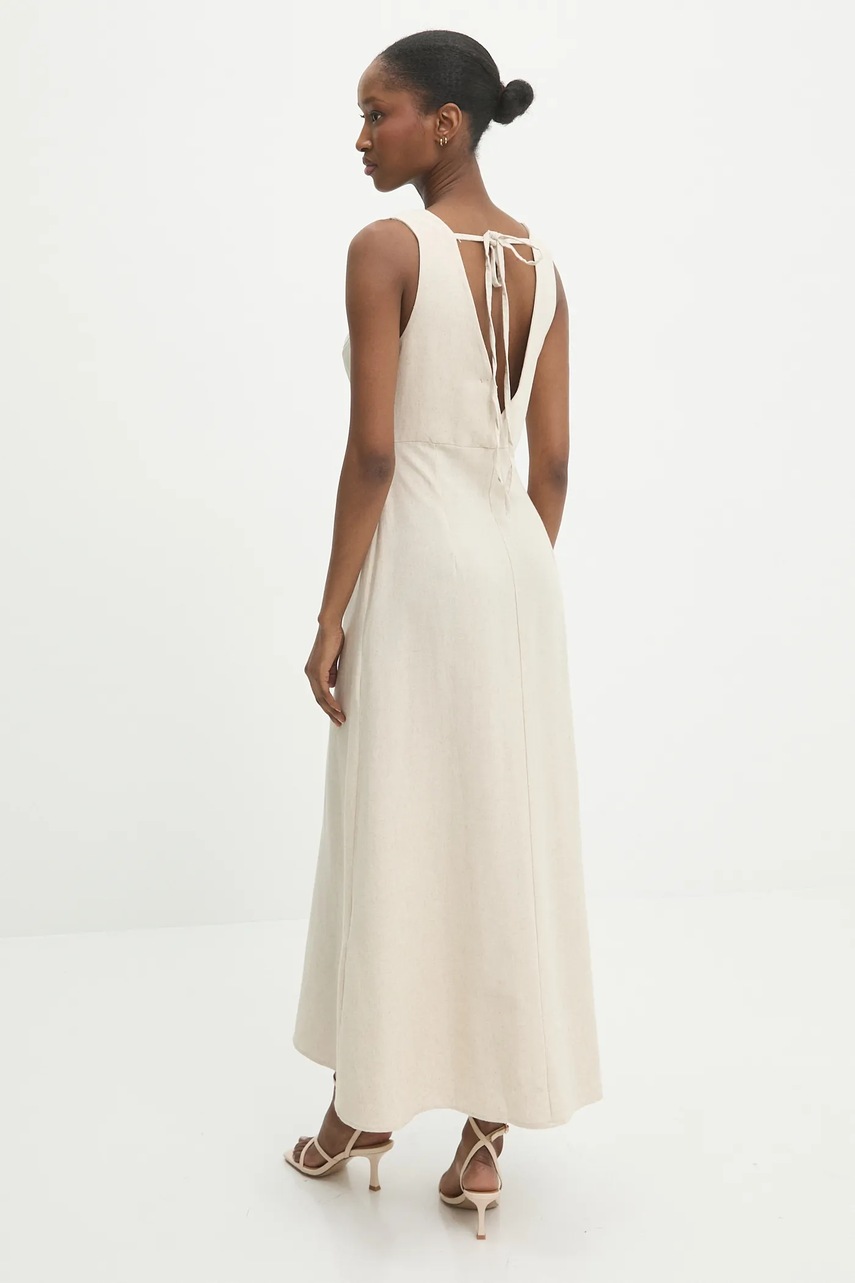 Answear.LAB sukienka z domieszką lnu kolor beżowy maxi rozkloszowana