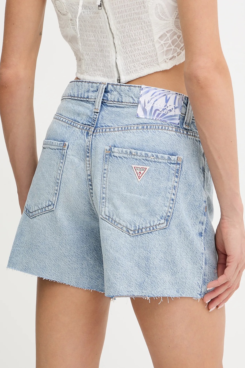 Guess szorty jeansowe damskie kolor niebieski gładkie high waist W5GD74 D5B96