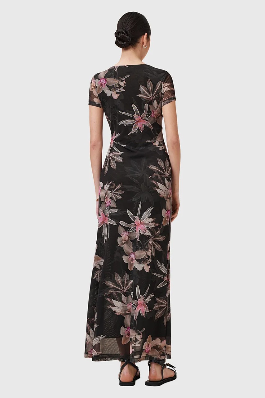 AllSaints sukienka GABBY kolor czarny midi rozkloszowana W237DC
