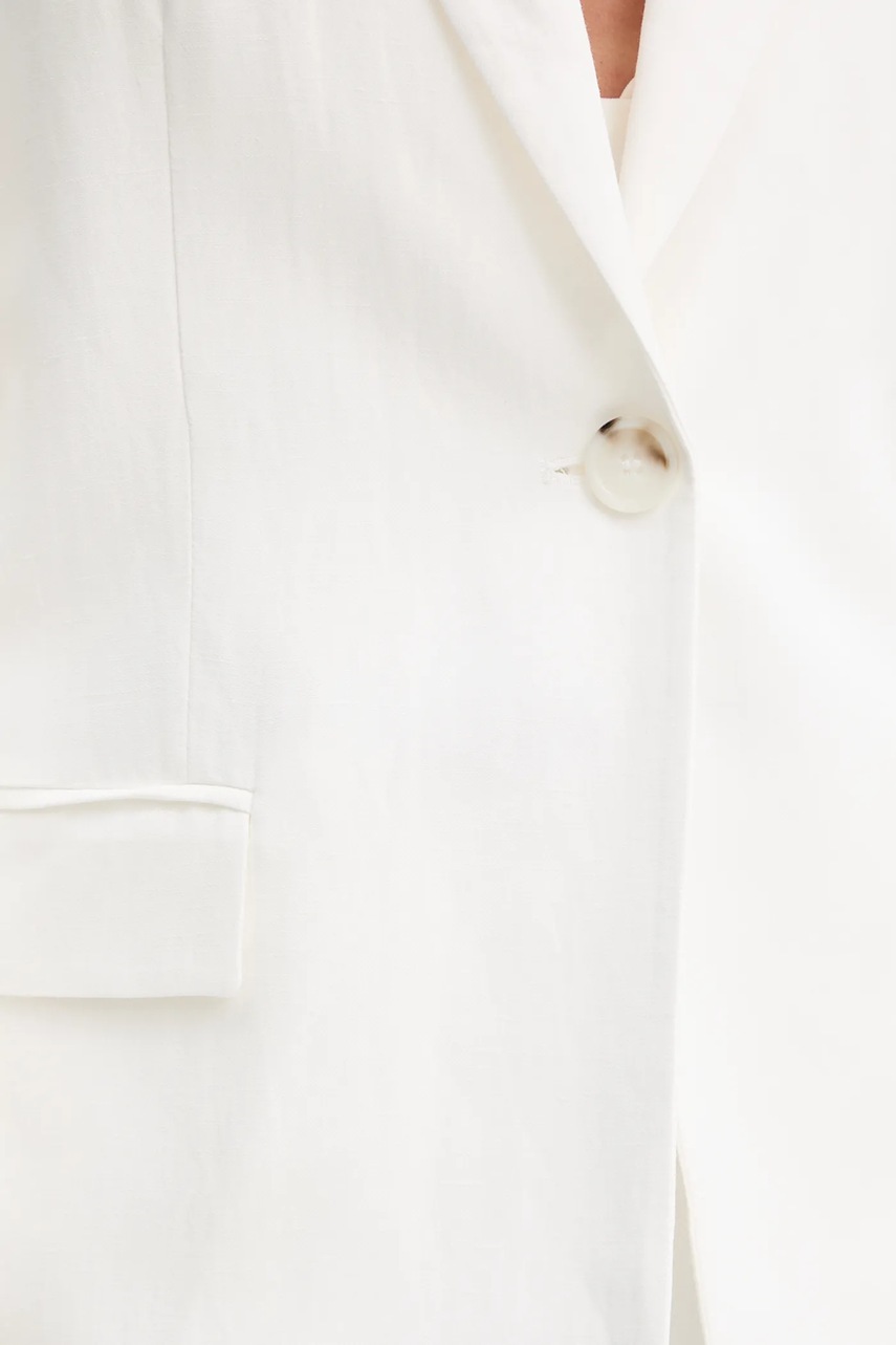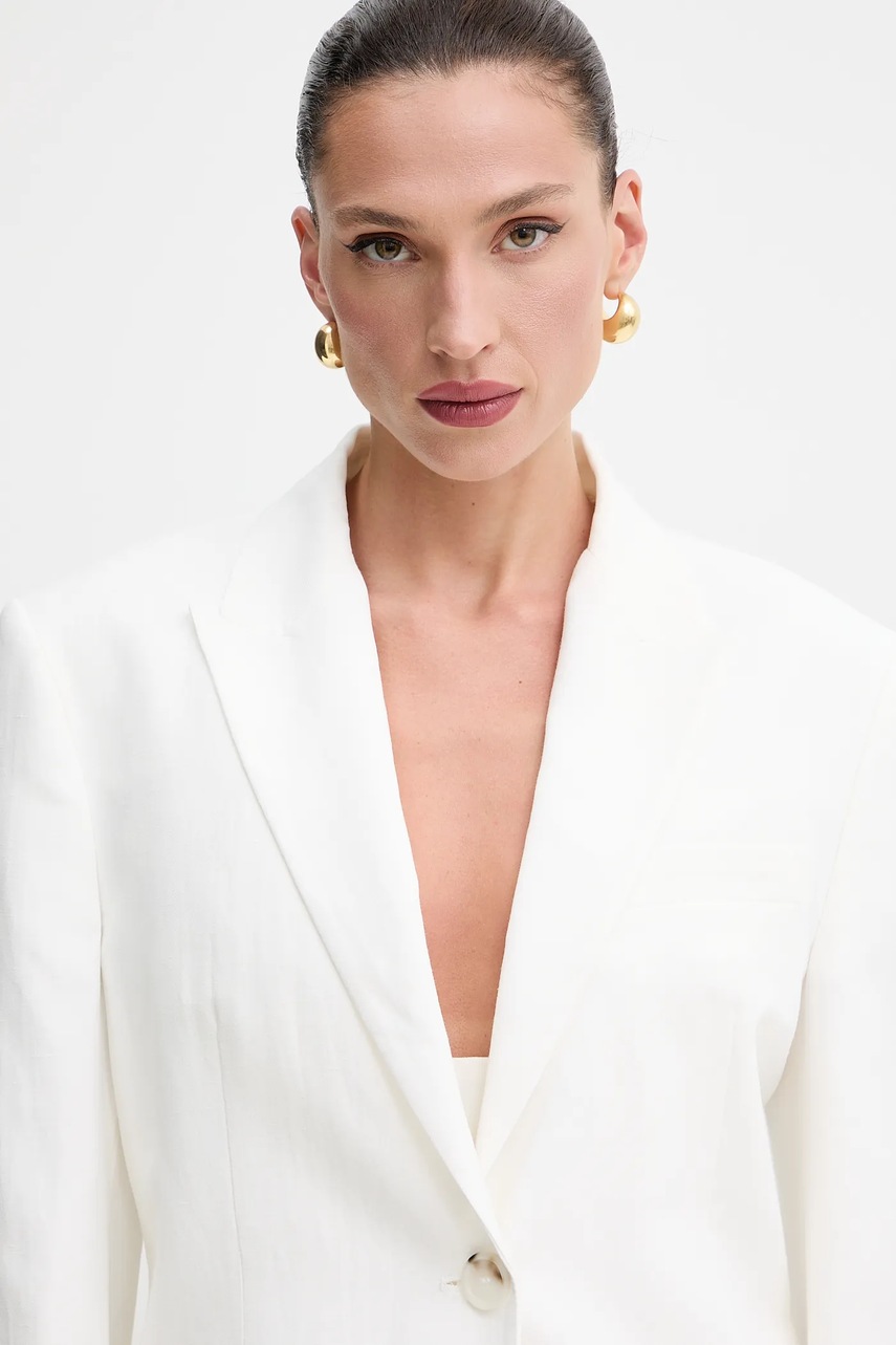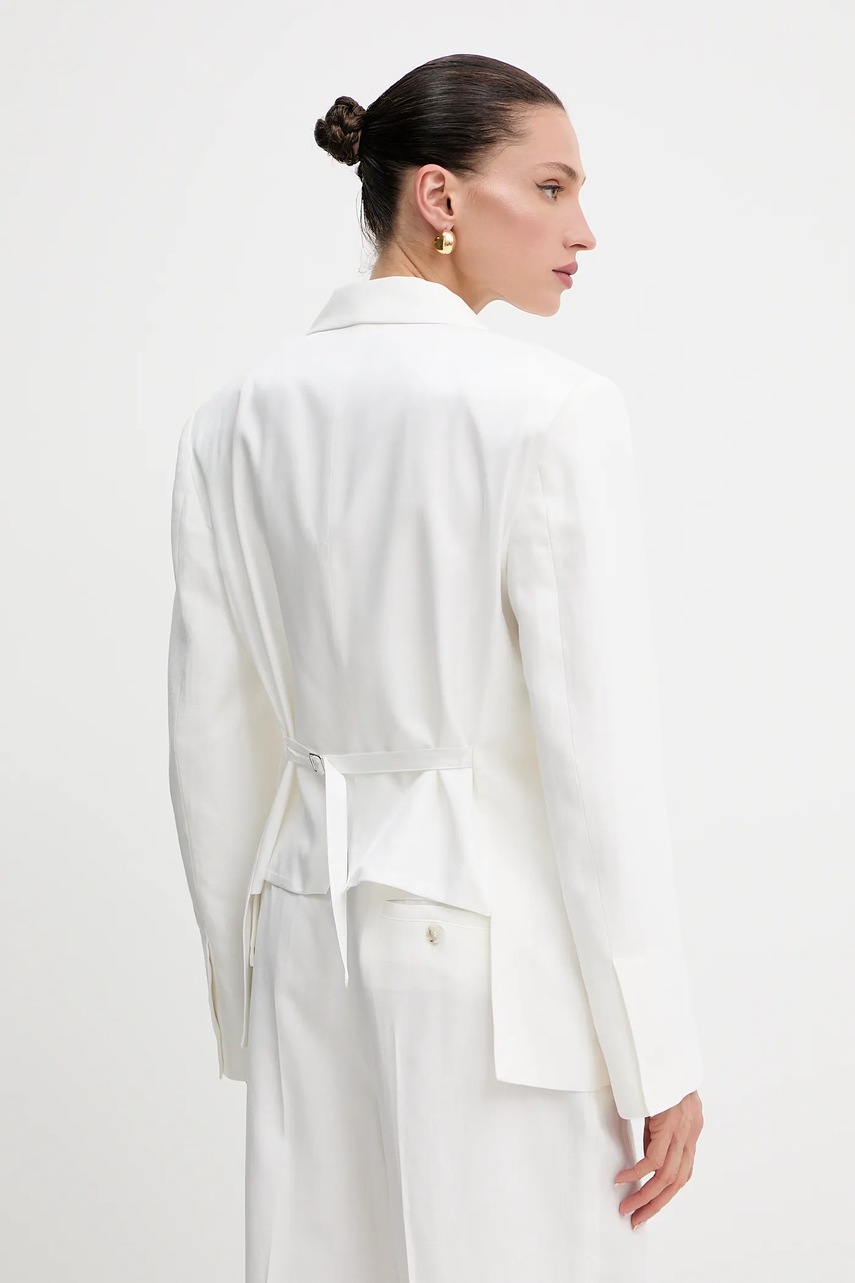 Pinko marynarka z domieszką lnu kolor biały jednorzędowa gładka 104944 A2FA