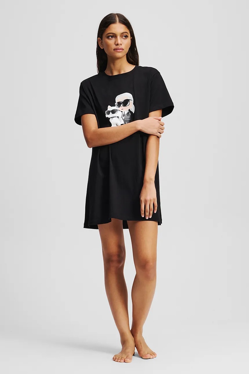 Karl Lagerfeld koszula nocna bawełniana IKON damska kolor czarny bawełniana A3W45007