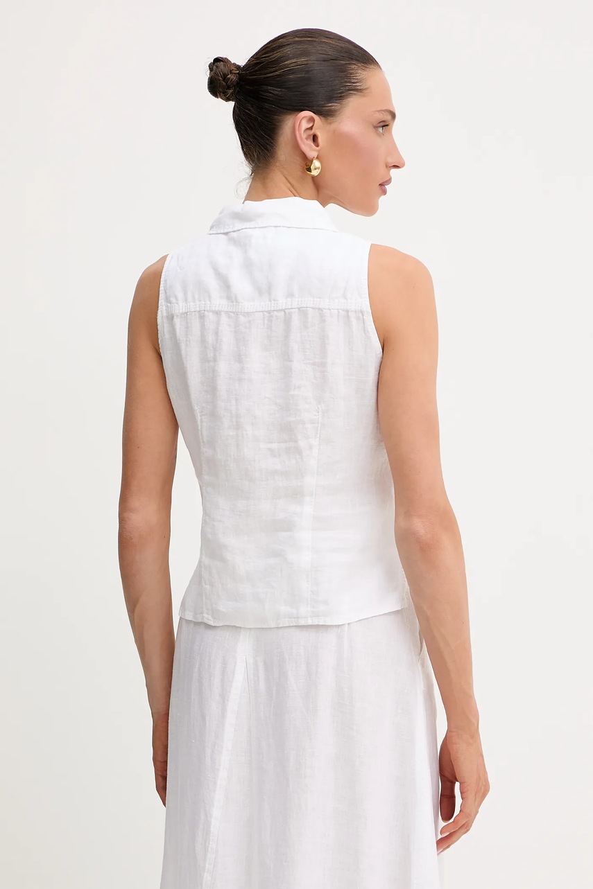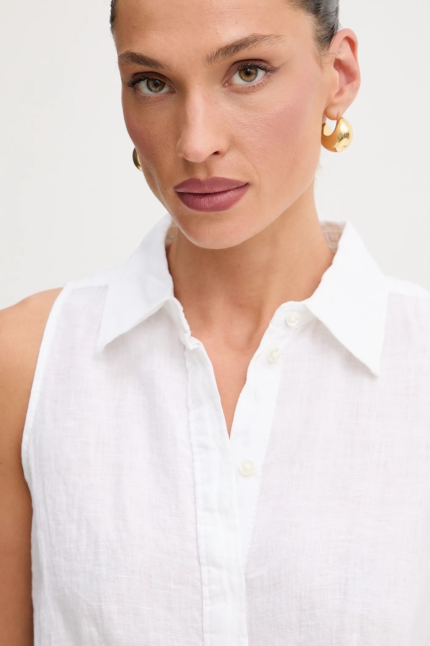 MAX&Co. koszula lniana damska kolor biały regular z kołnierzykiem klasycznym 2516161025200