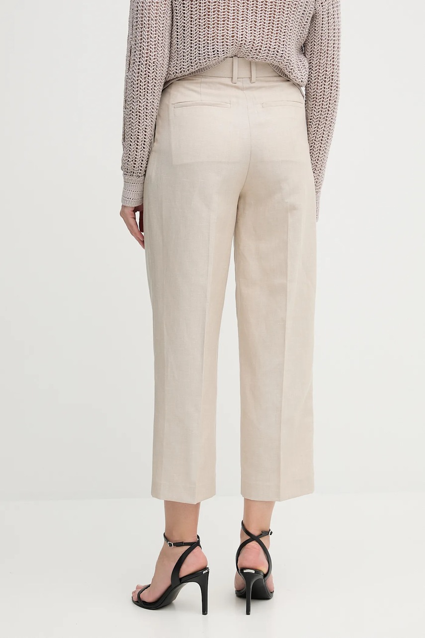 Tommy Hilfiger spodnie z domieszką lnu damskie kolor beżowy proste high waist WW0WW45461