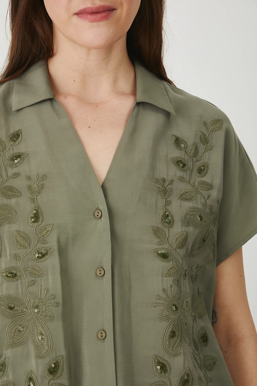 Medicine koszula damska kolor zielony relaxed z kołnierzykiem klasycznym