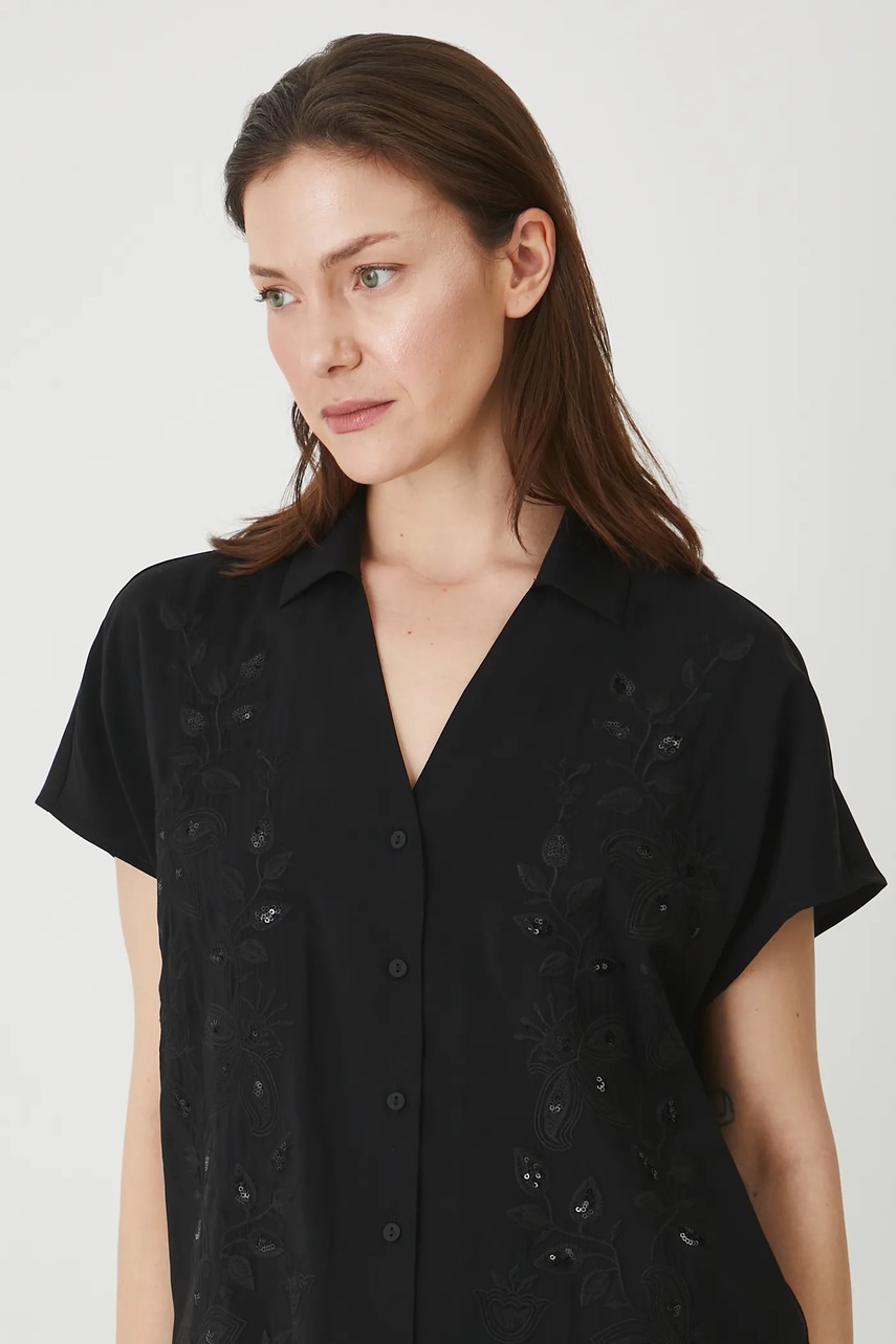 Medicine koszula damska kolor czarny relaxed z kołnierzykiem klasycznym