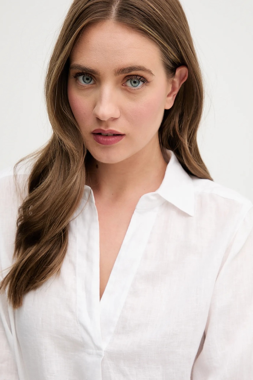 OUI bluzka lniana damska kolor biały gładka 92941