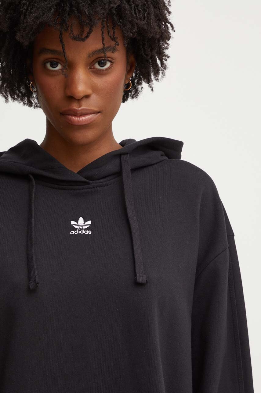 adidas Originals bluza bawełniana damska kolor czarny z kapturem gładka IY9615