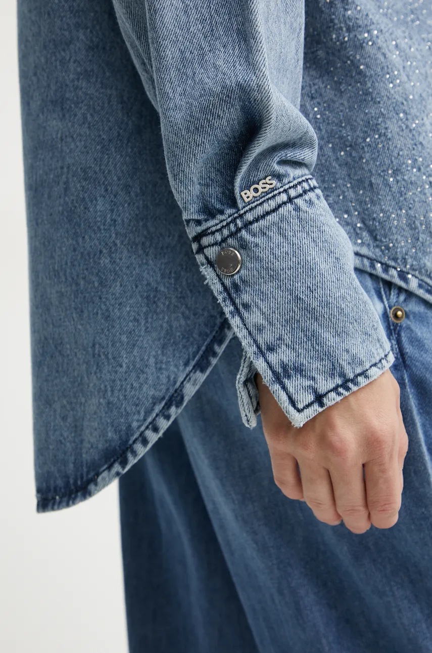 BOSS Orange koszula jeansowa damska kolor niebieski relaxed z kołnierzykiem klasycznym 50528350