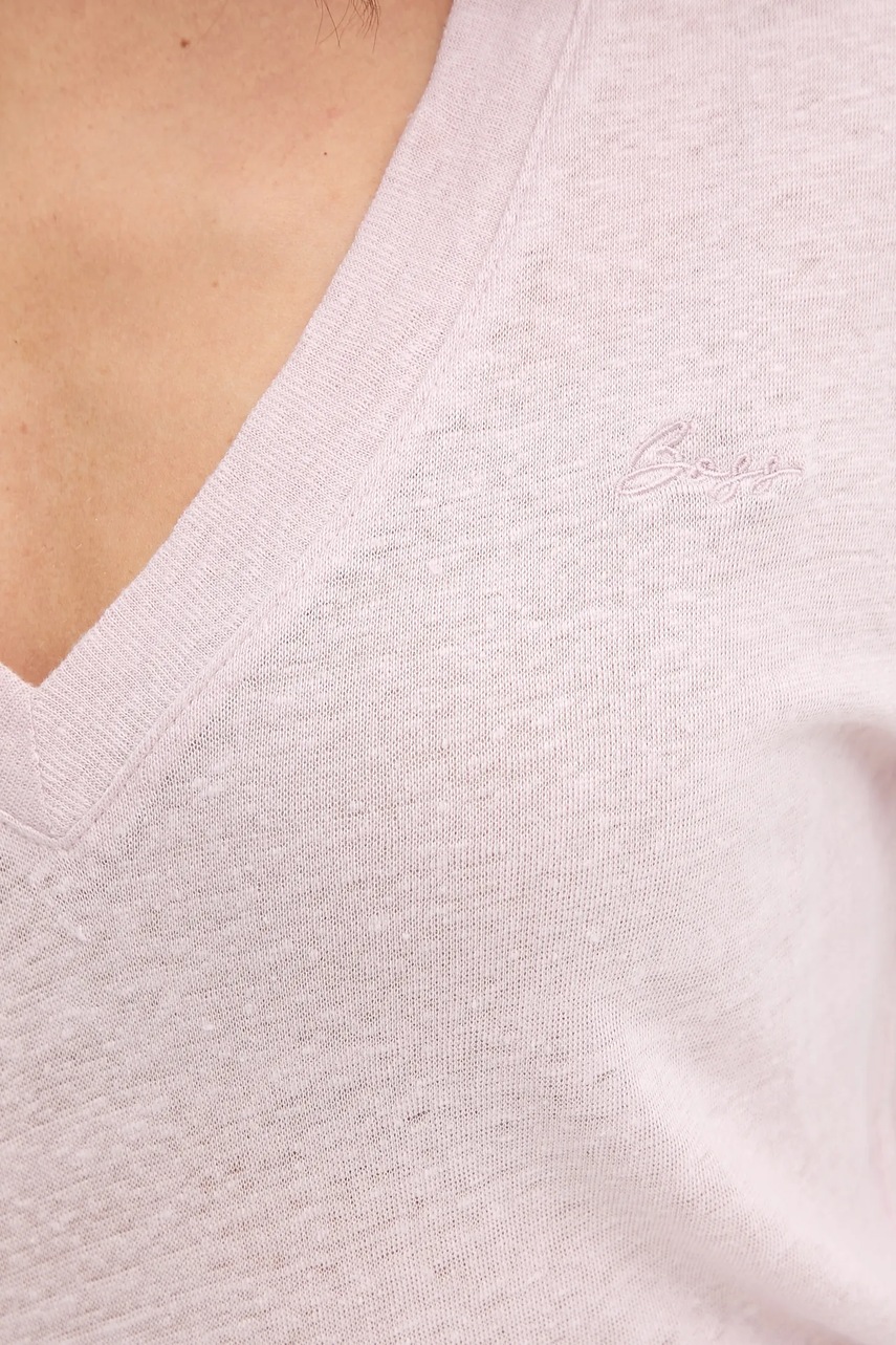 BOSS Orange t-shirt lniany damski kolor różowy 50538645