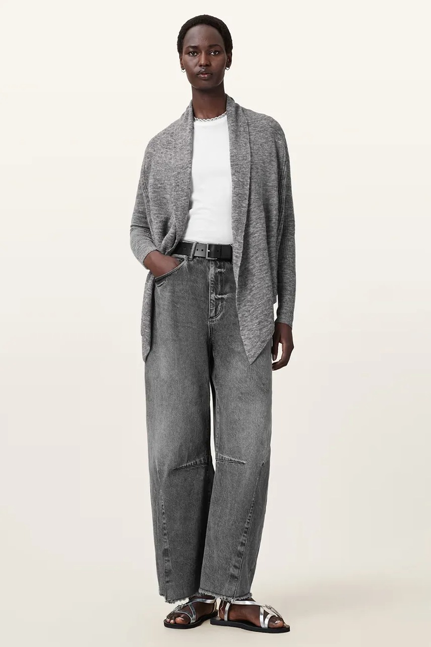 AllSaints kardigan z domieszką wełny HARPER damski kolor szary lekki W052KC