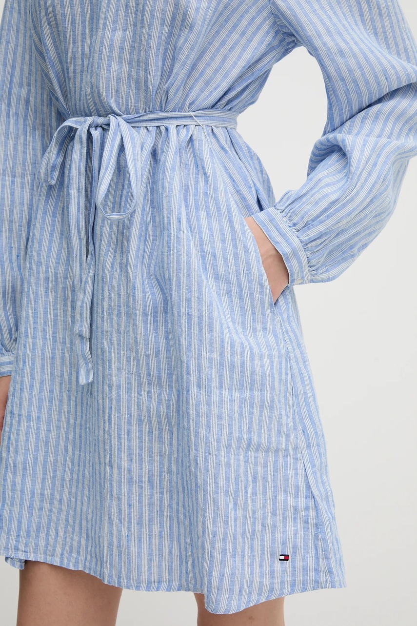 Tommy Hilfiger sukienka lniana kolor niebieski mini rozkloszowana WW0WW44666