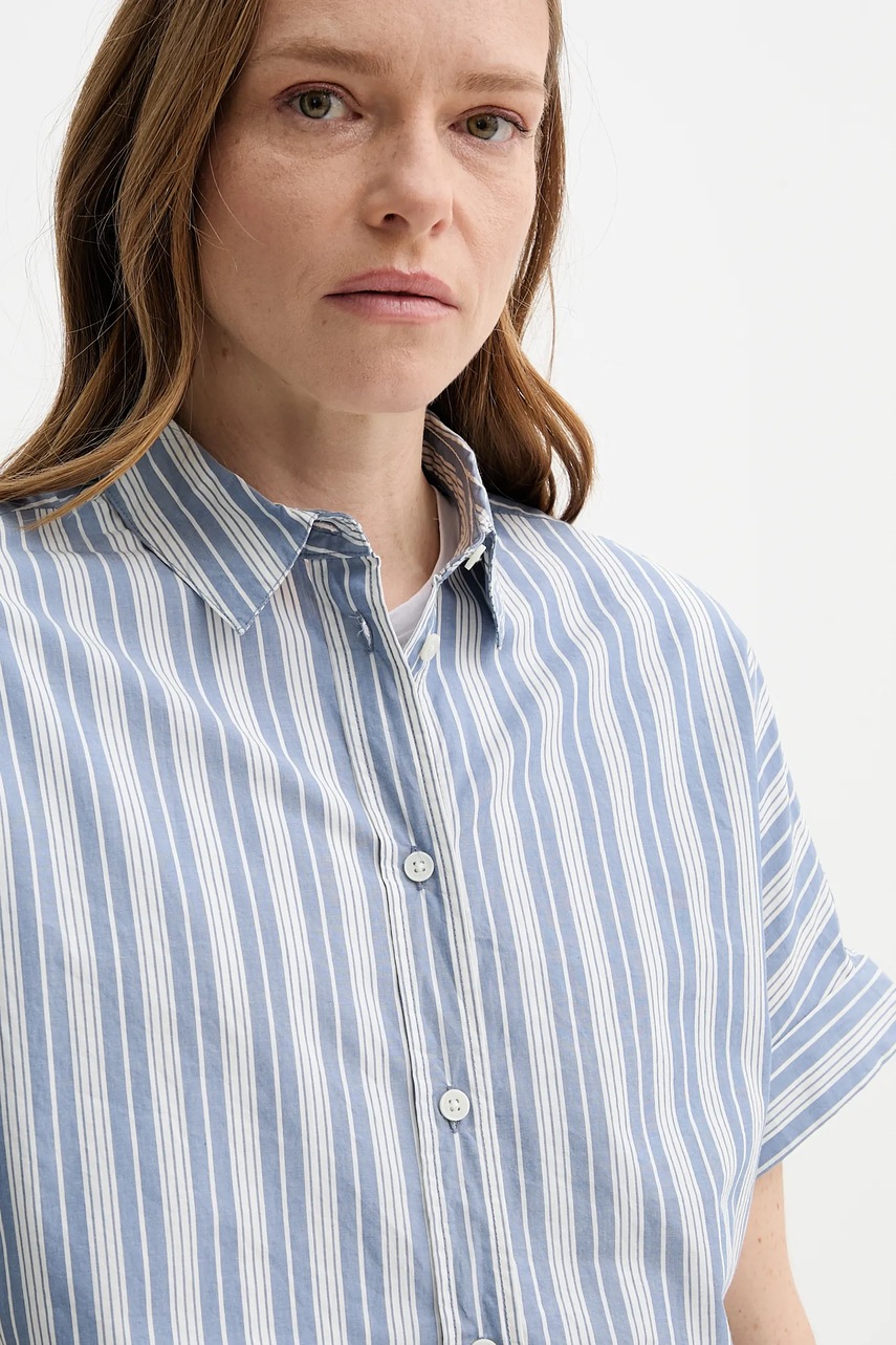 Marc O'Polo koszula bawełniana damska kolor niebieski relaxed z kołnierzykiem klasycznym 5000006446