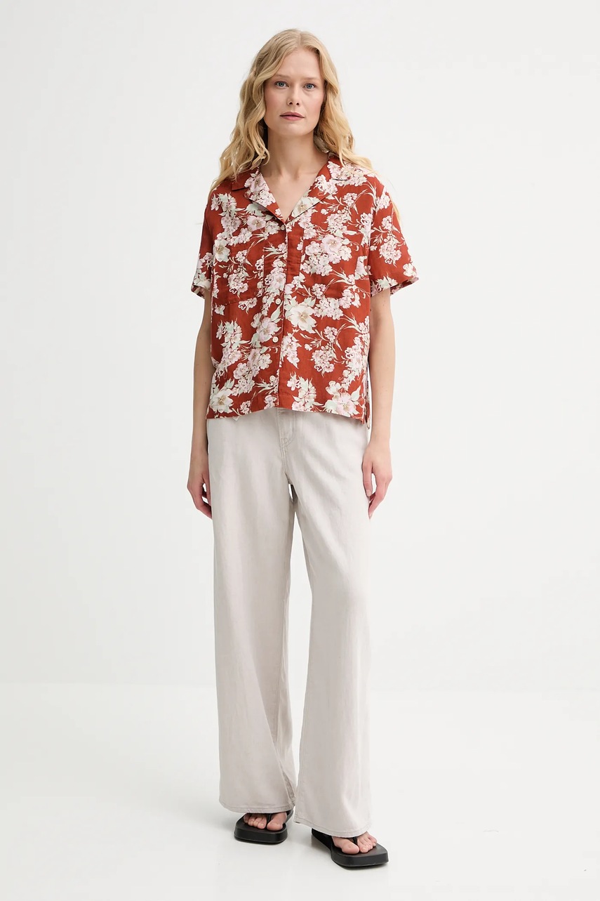 Levi's koszula lniana SONNY CAMP SHIRT damska kolor pomarańczowy regular z kołnierzykiem klasycznym 001HO