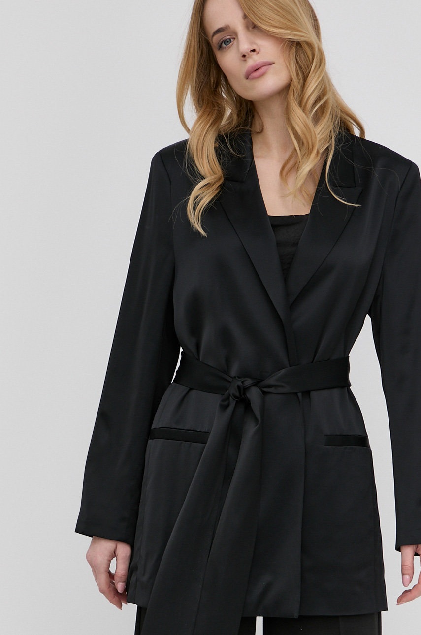 BOSS marynarka z domieszką wełny 50463756 kolor czarny niezapinana gładka
