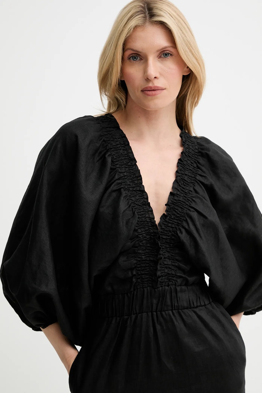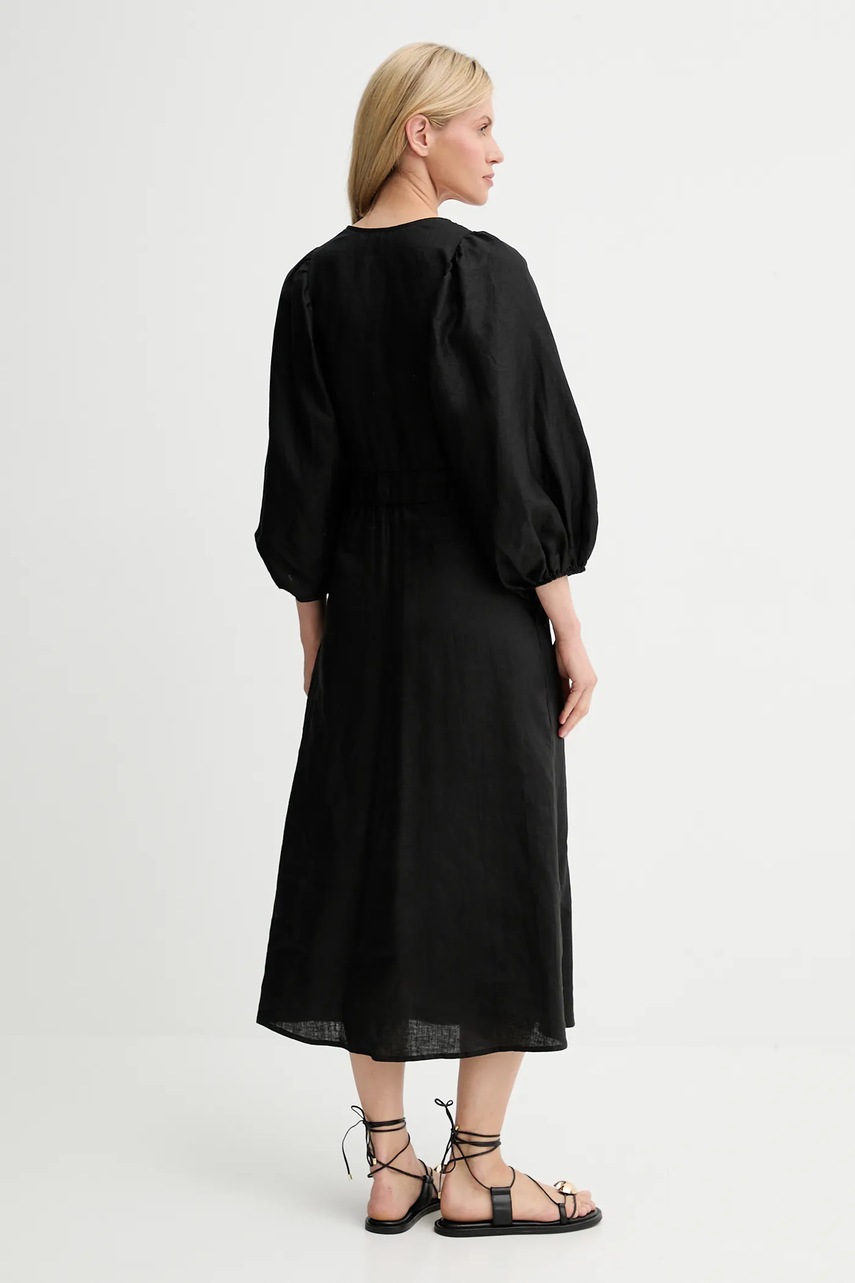 Answear.LAB sukienka lniana kolor czarny midi rozkloszowana