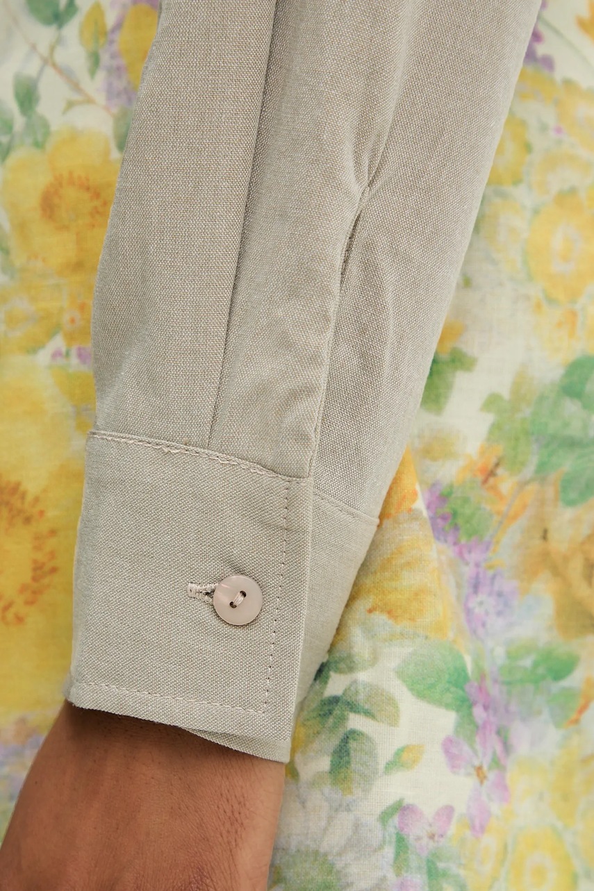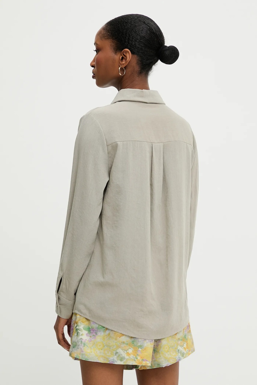 Answear.LAB koszula lniana damska kolor beżowy regular z kołnierzykiem klasycznym