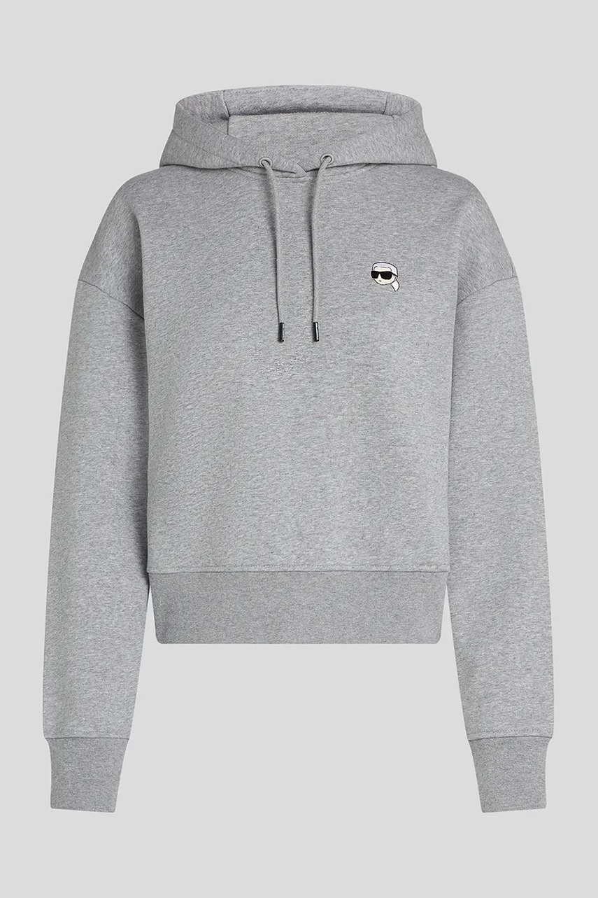 Karl Lagerfeld bluza bawełniana IKON damska kolor szary z kapturem melanżowa A3W20053