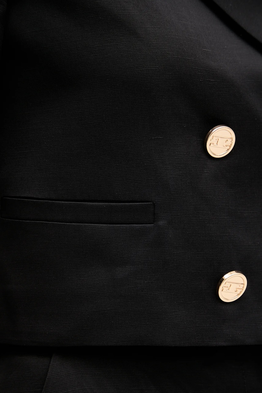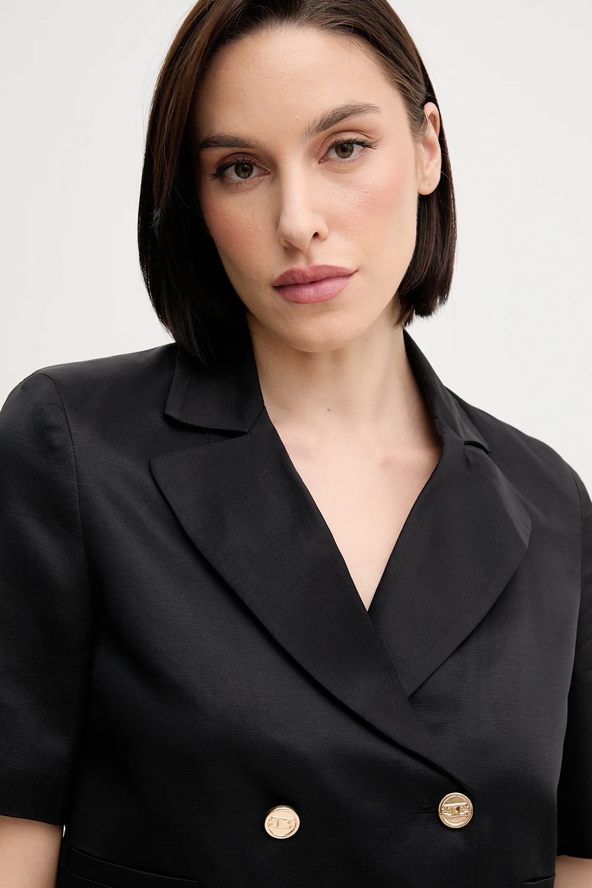 Gaudi marynarka z domieszką lnu kolor czarny dwurzędowa gładka 511FD35006