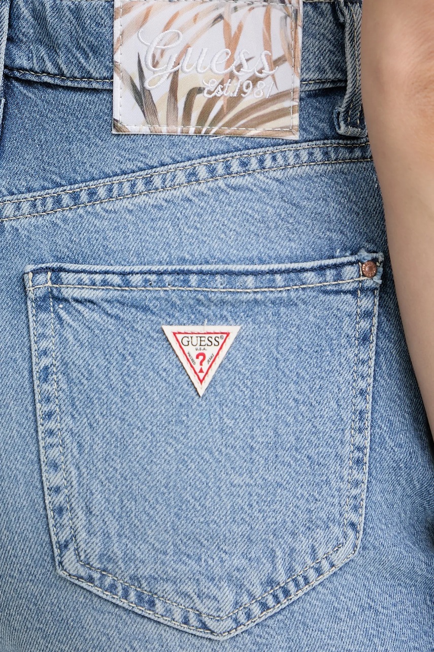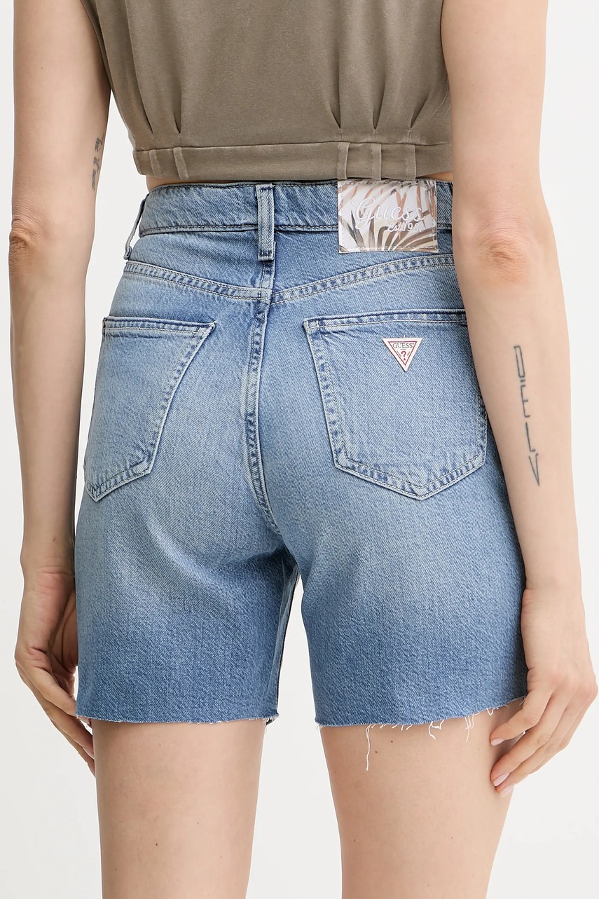 Guess szorty jeansowe damskie kolor niebieski gładkie high waist W5GD47 D5B94