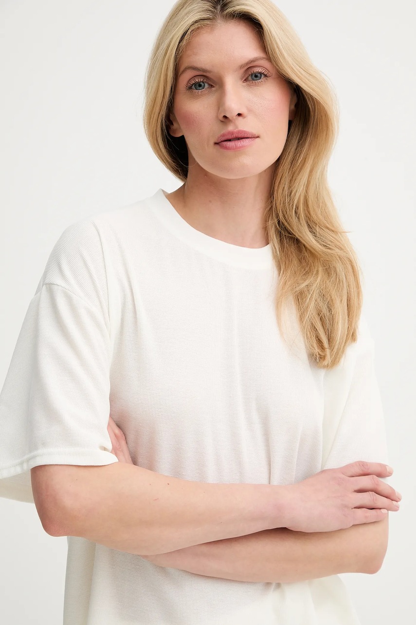 - Krój rękawa z obniżoną linią ramion nie ogranicza mobilności.