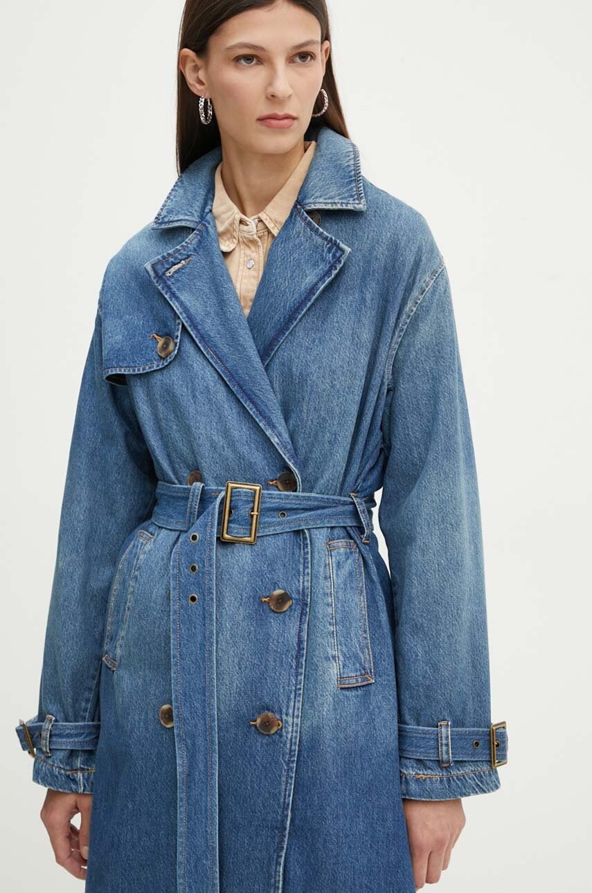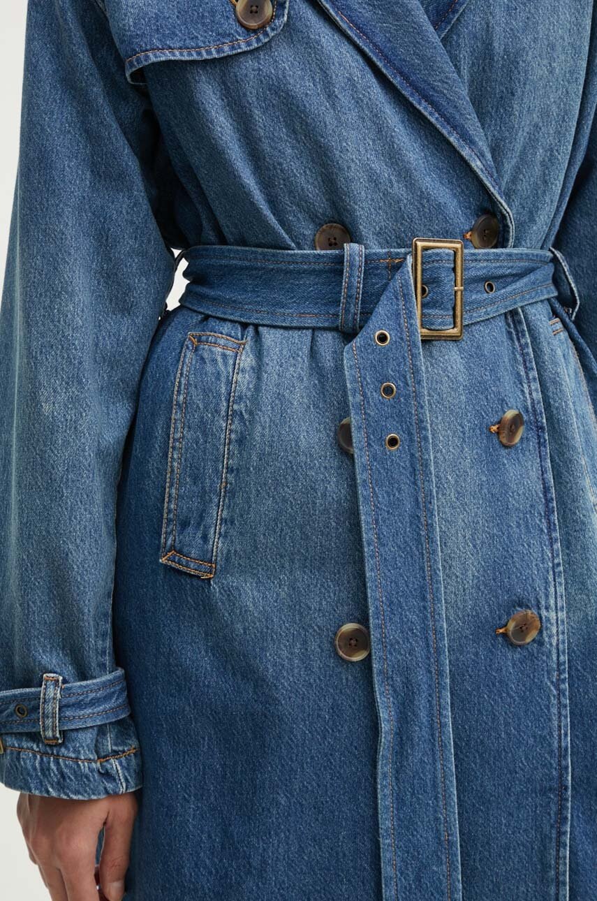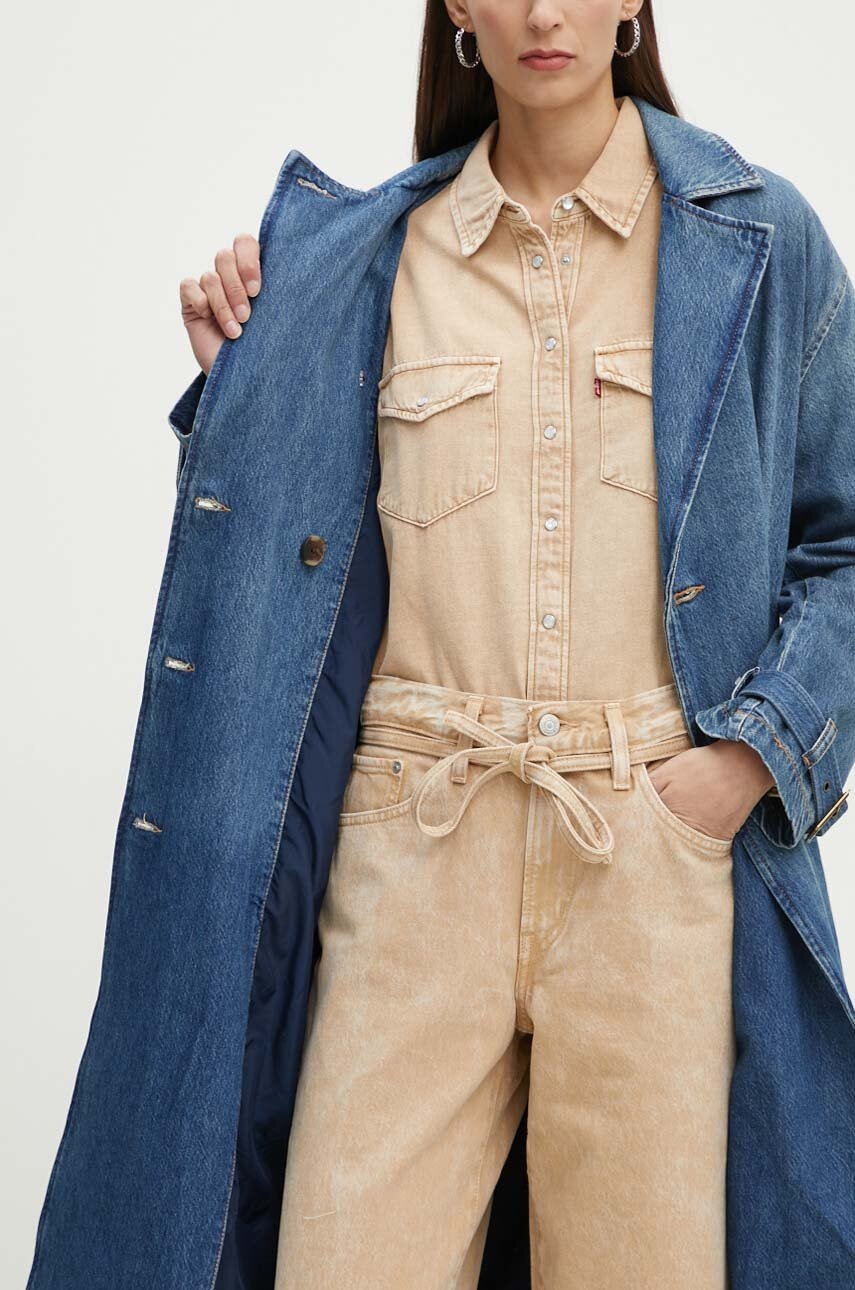 Levi's płaszcz jeansowy damski kolor granatowy przejściowy dwurzędowy A8976