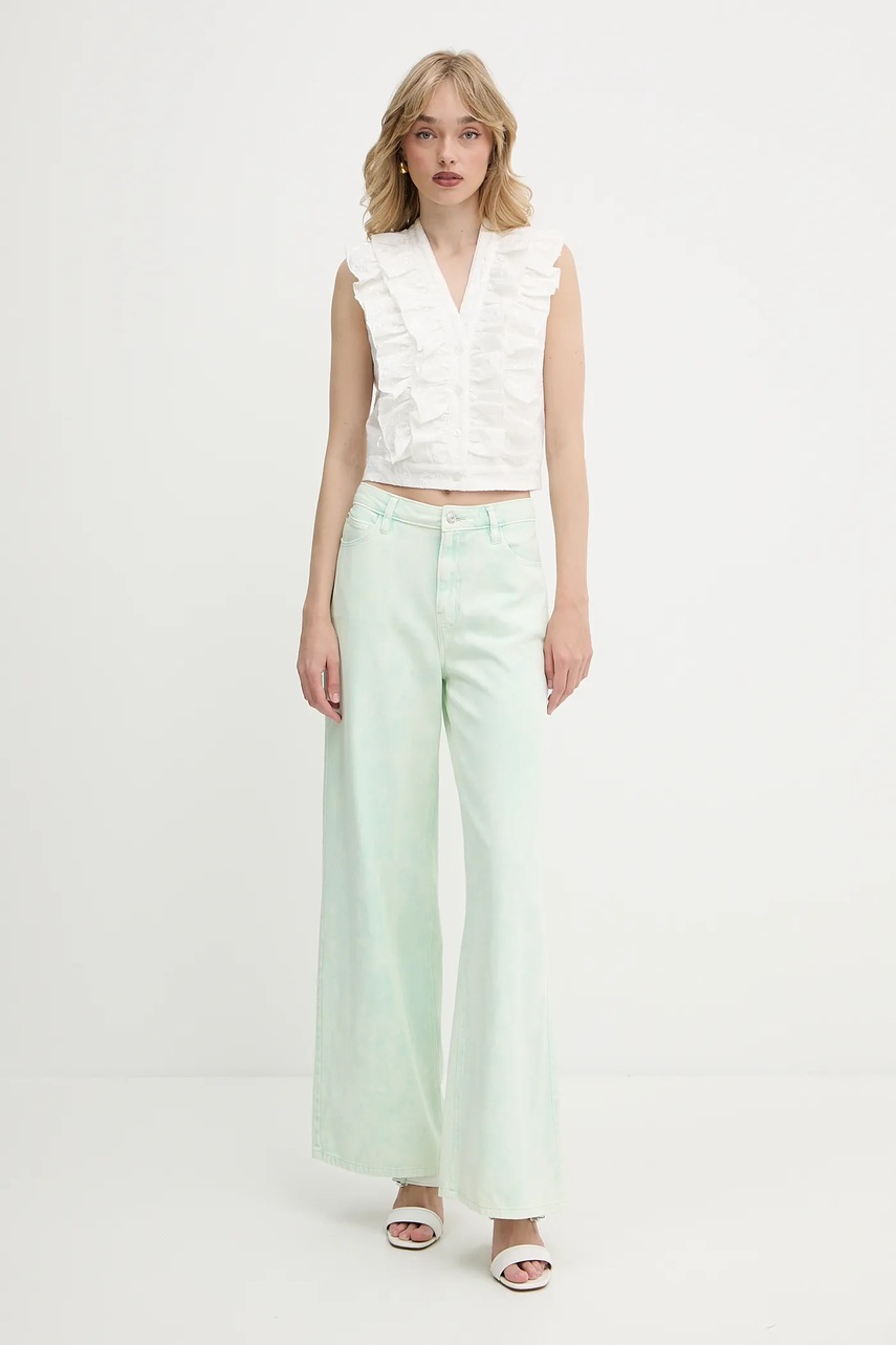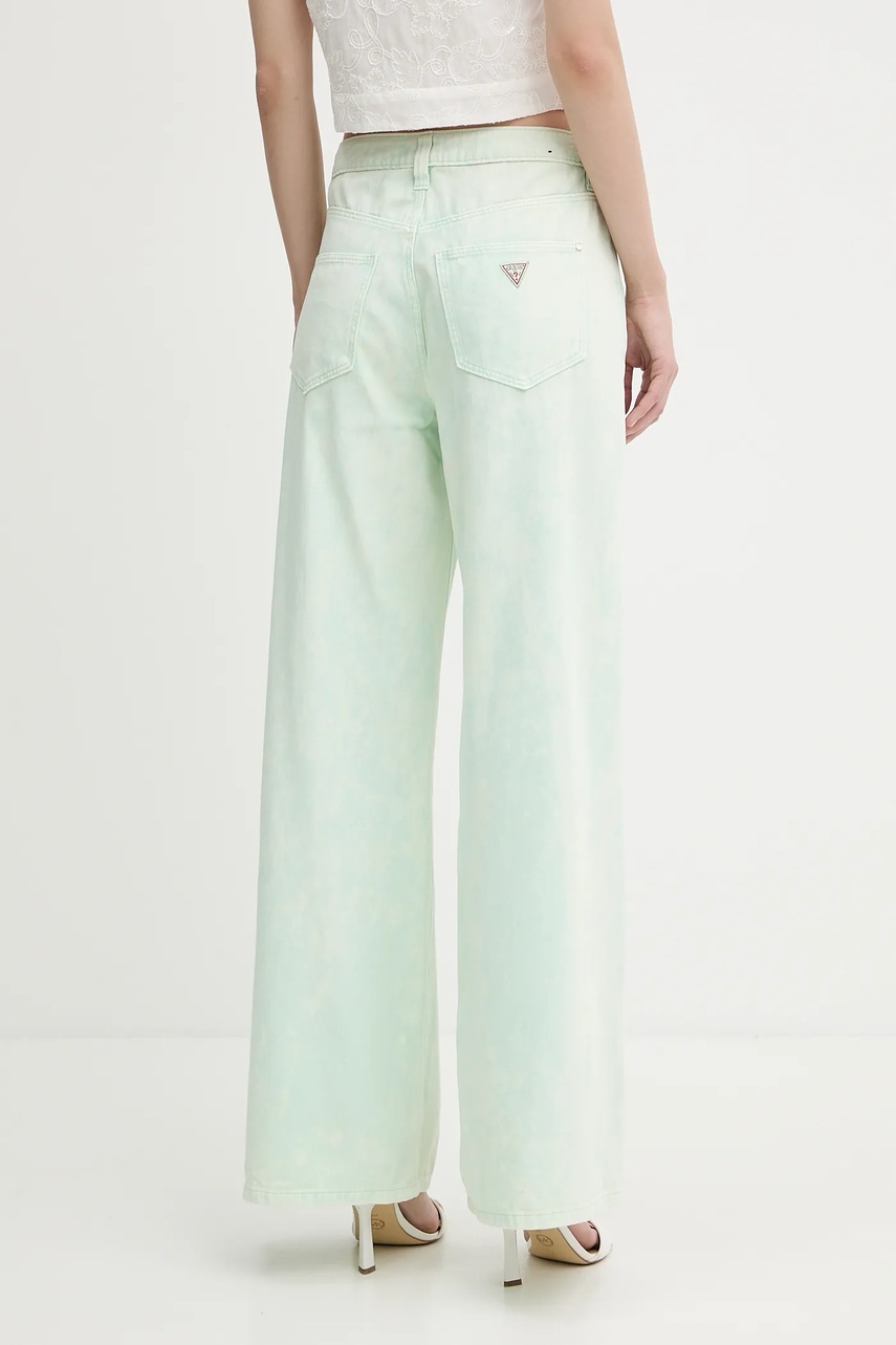 Guess jeansy bawełniane BELLFLOWER damskie kolor zielony W5GA82 WHAG1