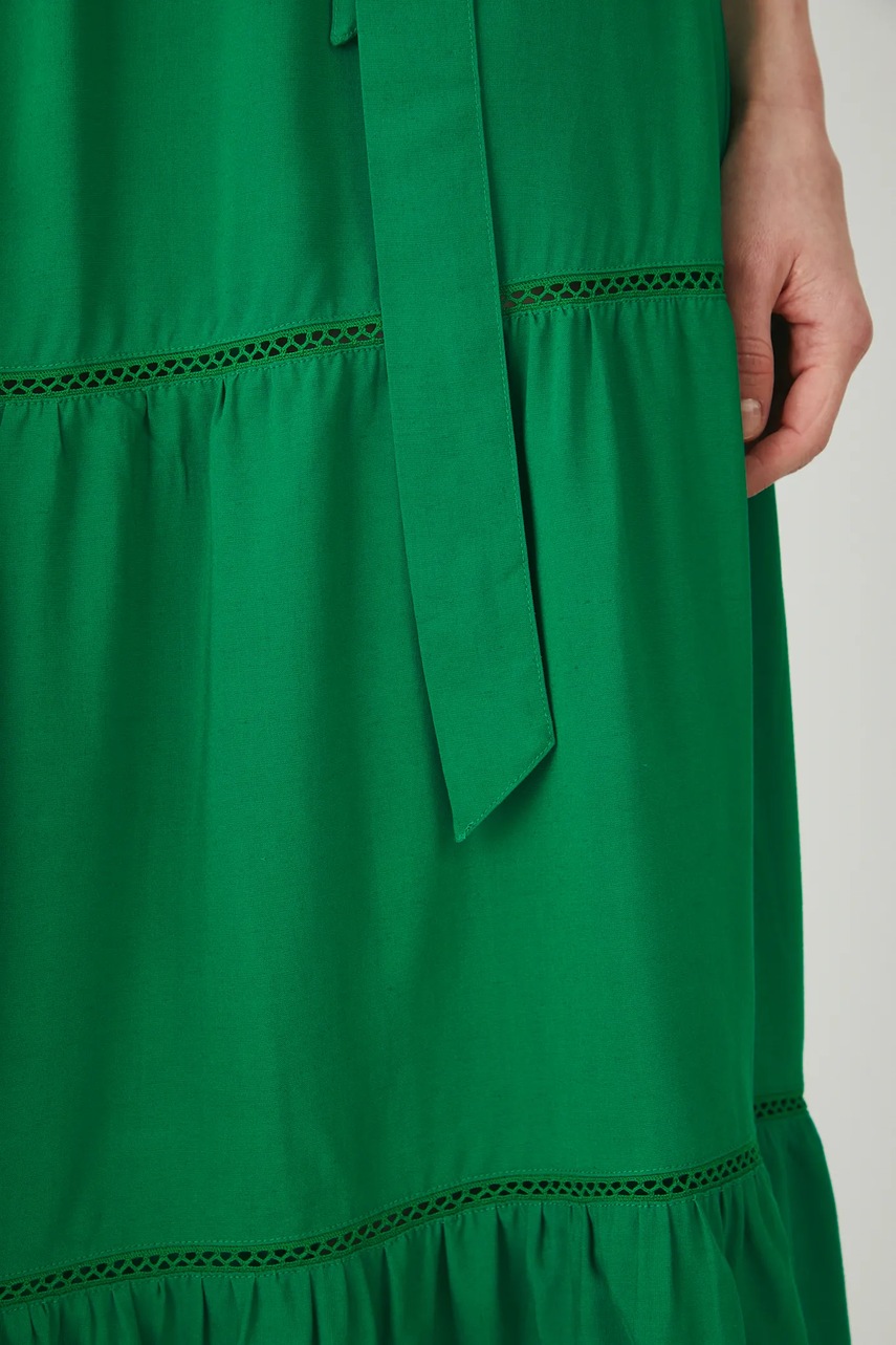 Medicine sukienka z domieszką lnu kolor zielony maxi rozkloszowana