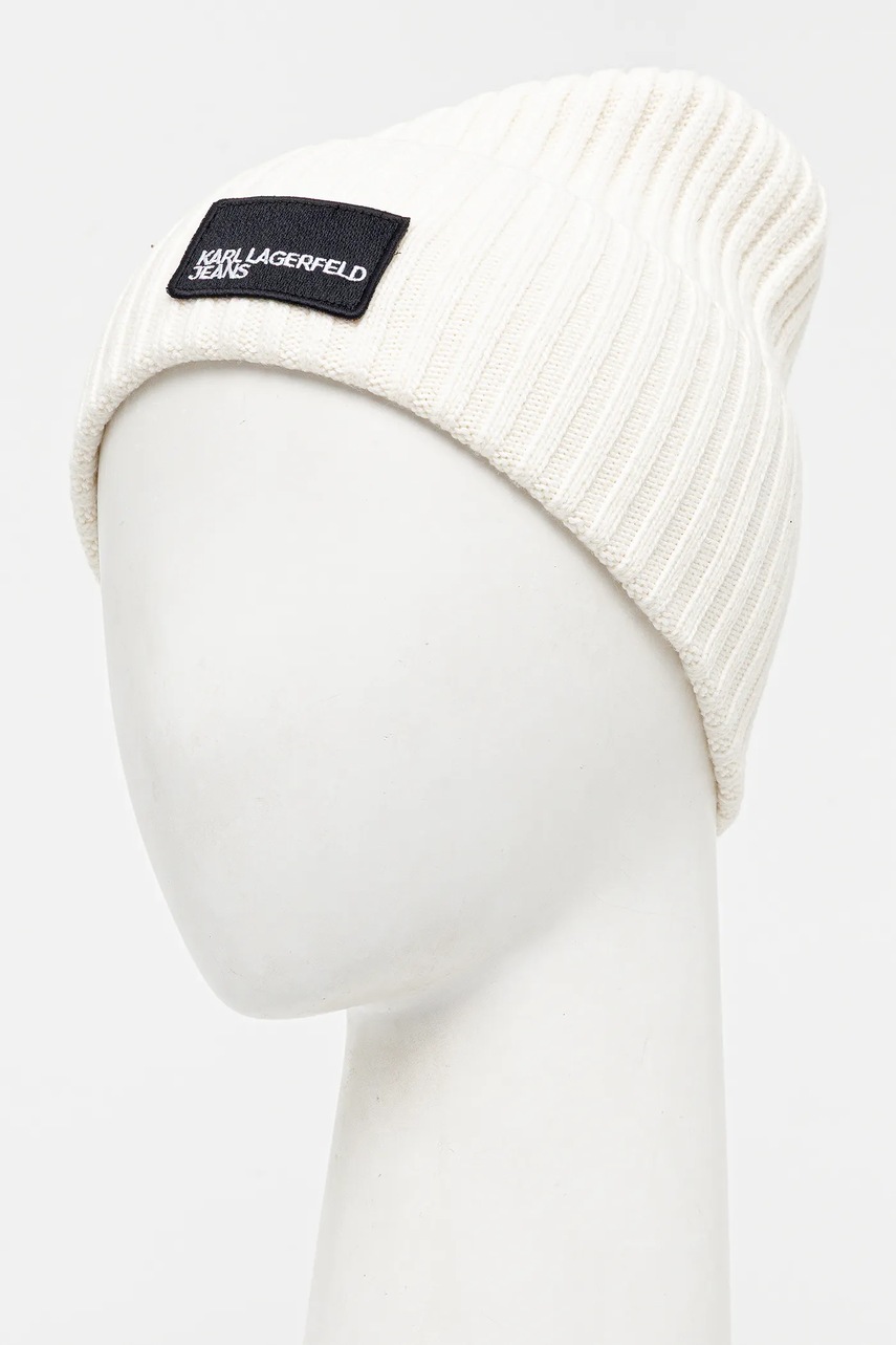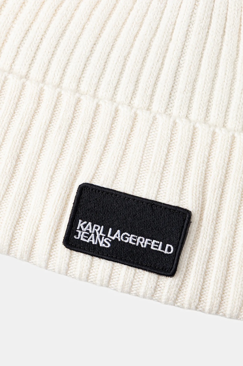 Karl Lagerfeld Jeans czapka z domieszką wełny kolor beżowy z grubej dzianiny A3M33115