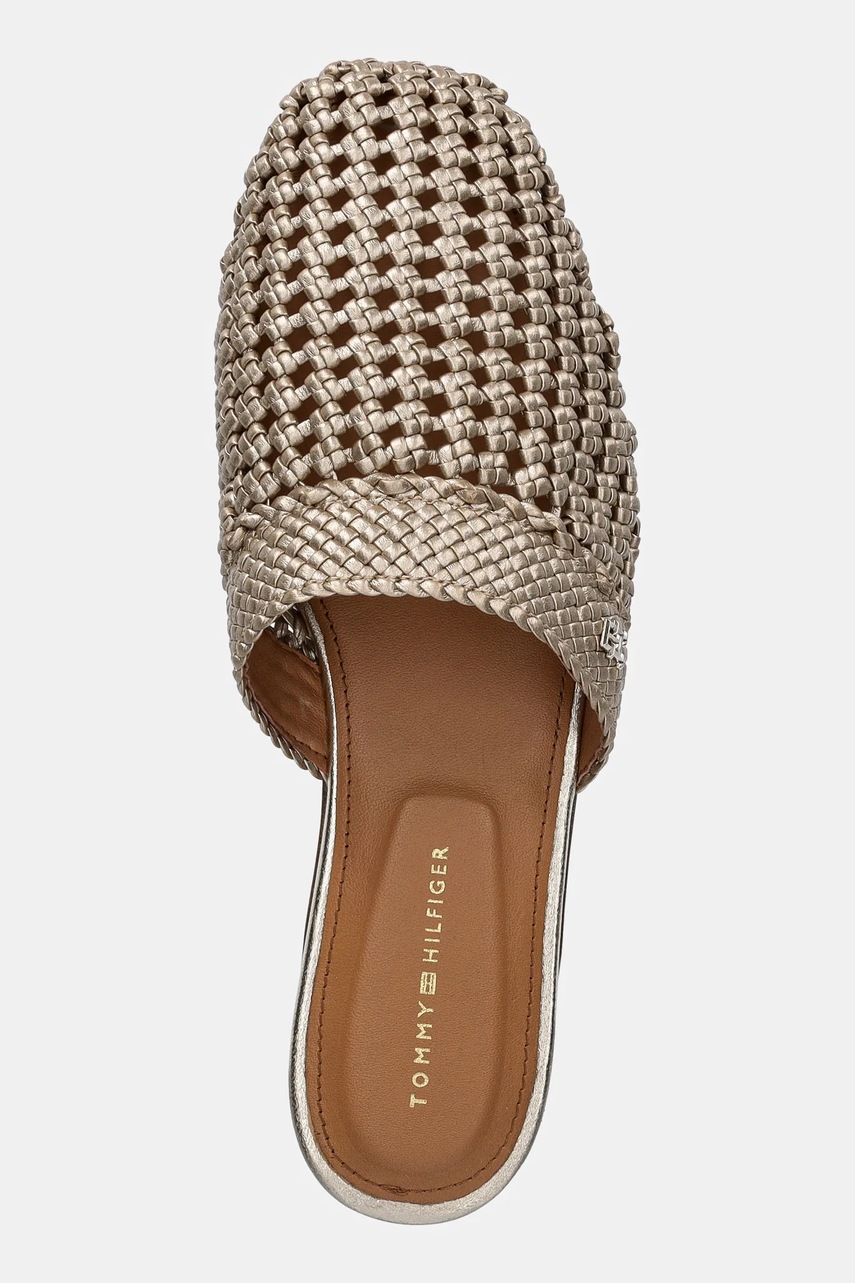 Tommy Hilfiger klapki CROCHET METALLIC LEATHER MULE damskie kolor złoty FW0FW08606
