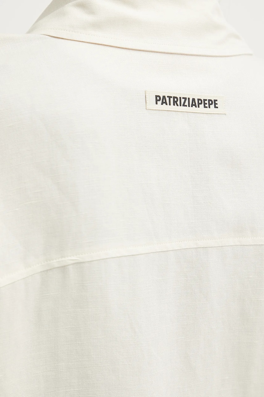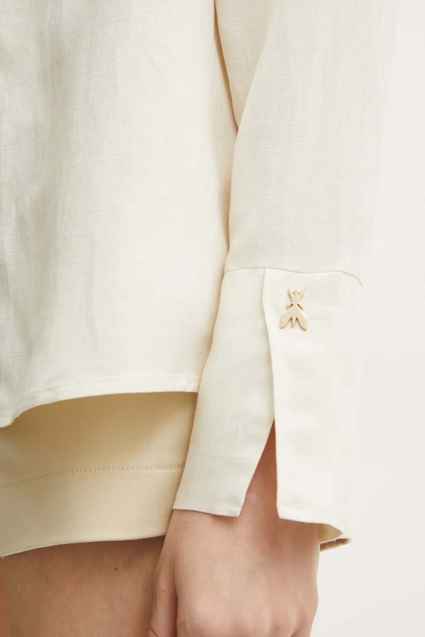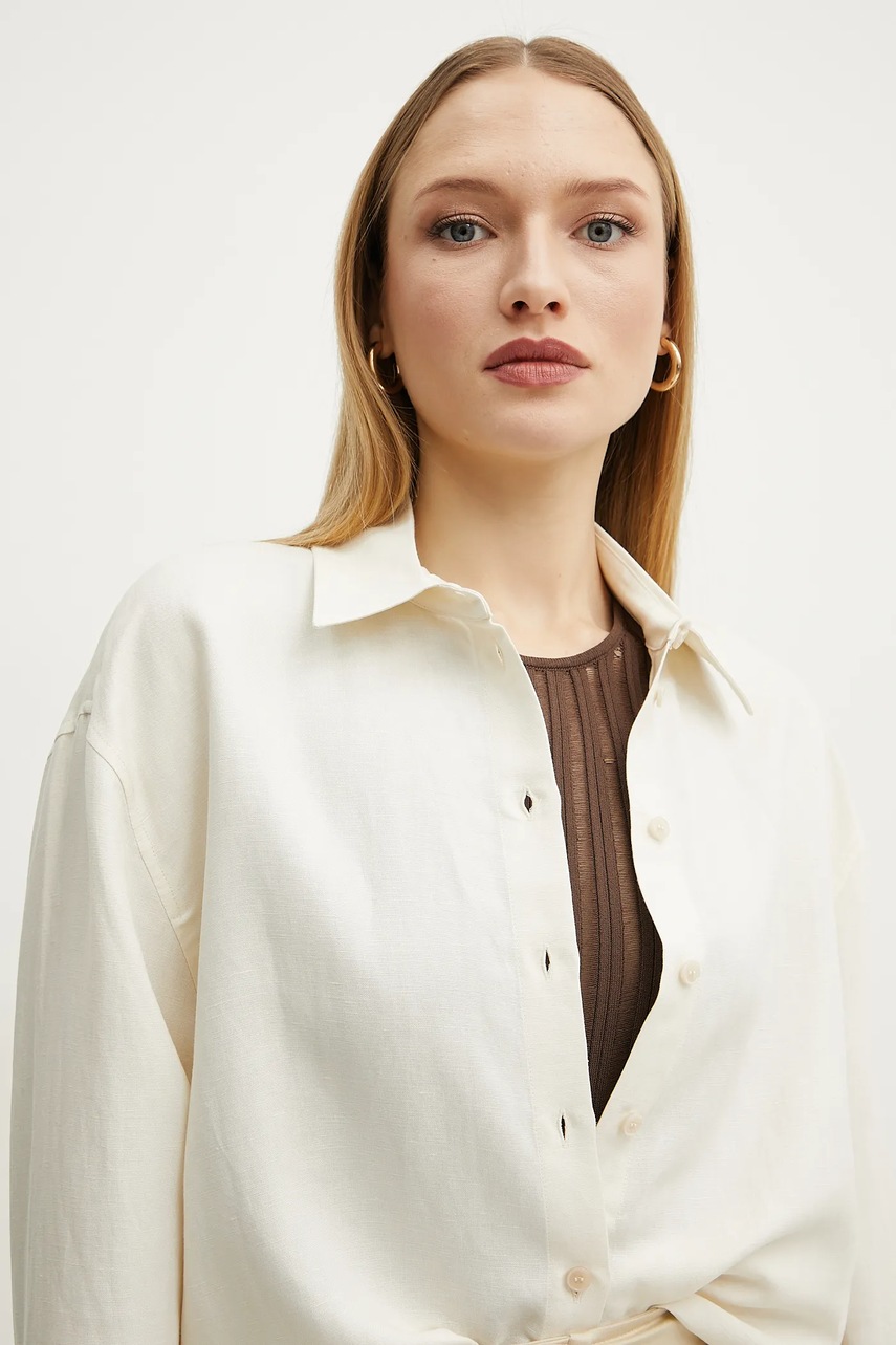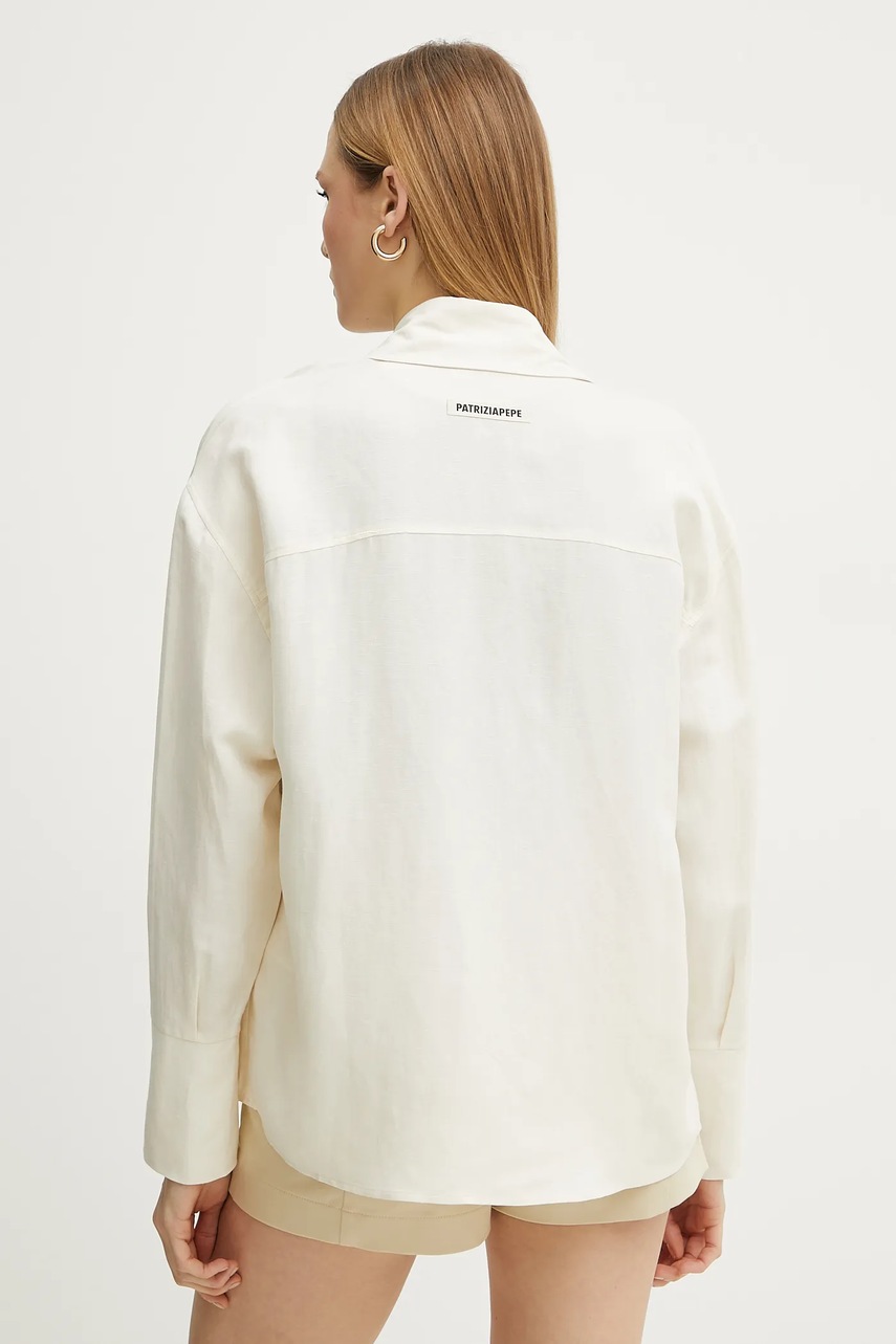 Patrizia Pepe koszula z domieszką lnu damska kolor beżowy relaxed z kołnierzykiem klasycznym 2C1602 A052