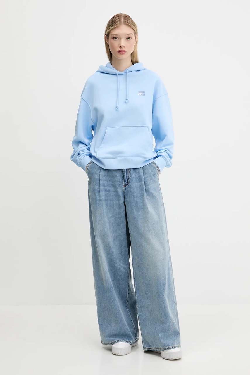 Tommy Jeans bluza bawełniana damska kolor niebieski z kapturem DW0DW19414