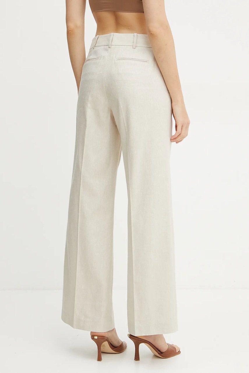 MICHAEL Michael Kors spodnie lniane damskie kolor beżowy proste high waist MS530TFH6R