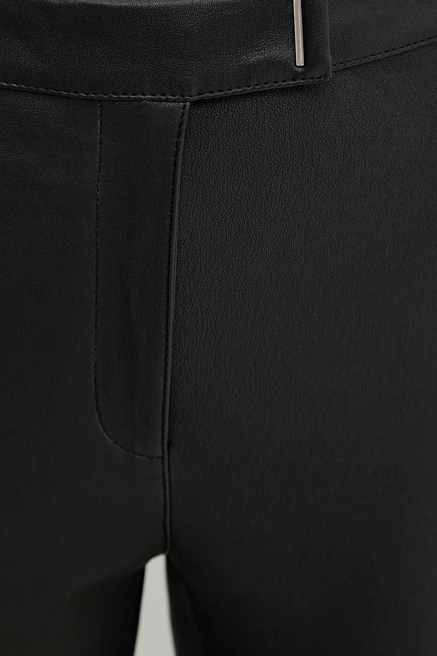 BOSS spodnie skórzane damskie kolor czarny dopasowane high waist 50541926