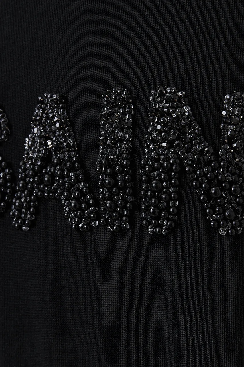 - Model z ozdobną aplikacją z koralików.