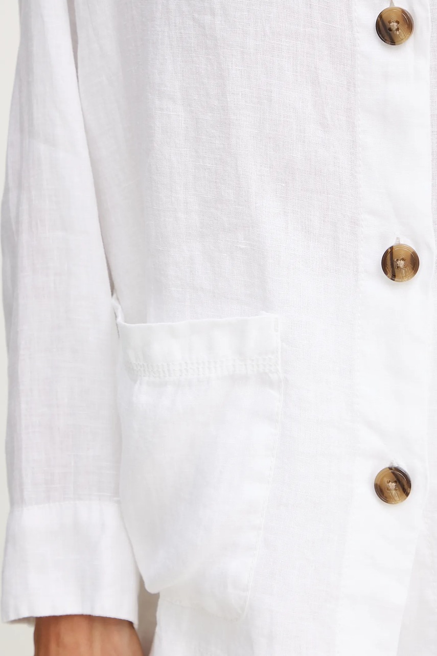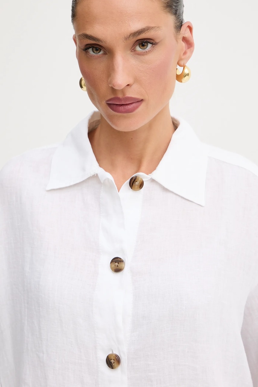 MAX&Co. koszula lniana damska kolor biały relaxed z kołnierzykiem klasycznym 2516111035200
