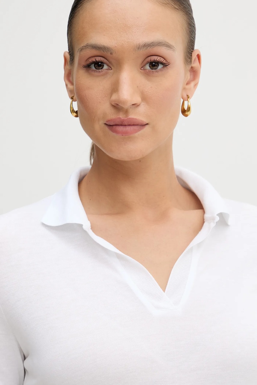 Lacoste T-shirt PF5462 damski kolor czarny z kołnierzykiem PF5462-001