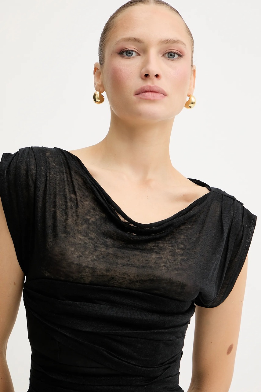 Pinko sukienka lniana kolor czarny mini dopasowana 104872 A2GF