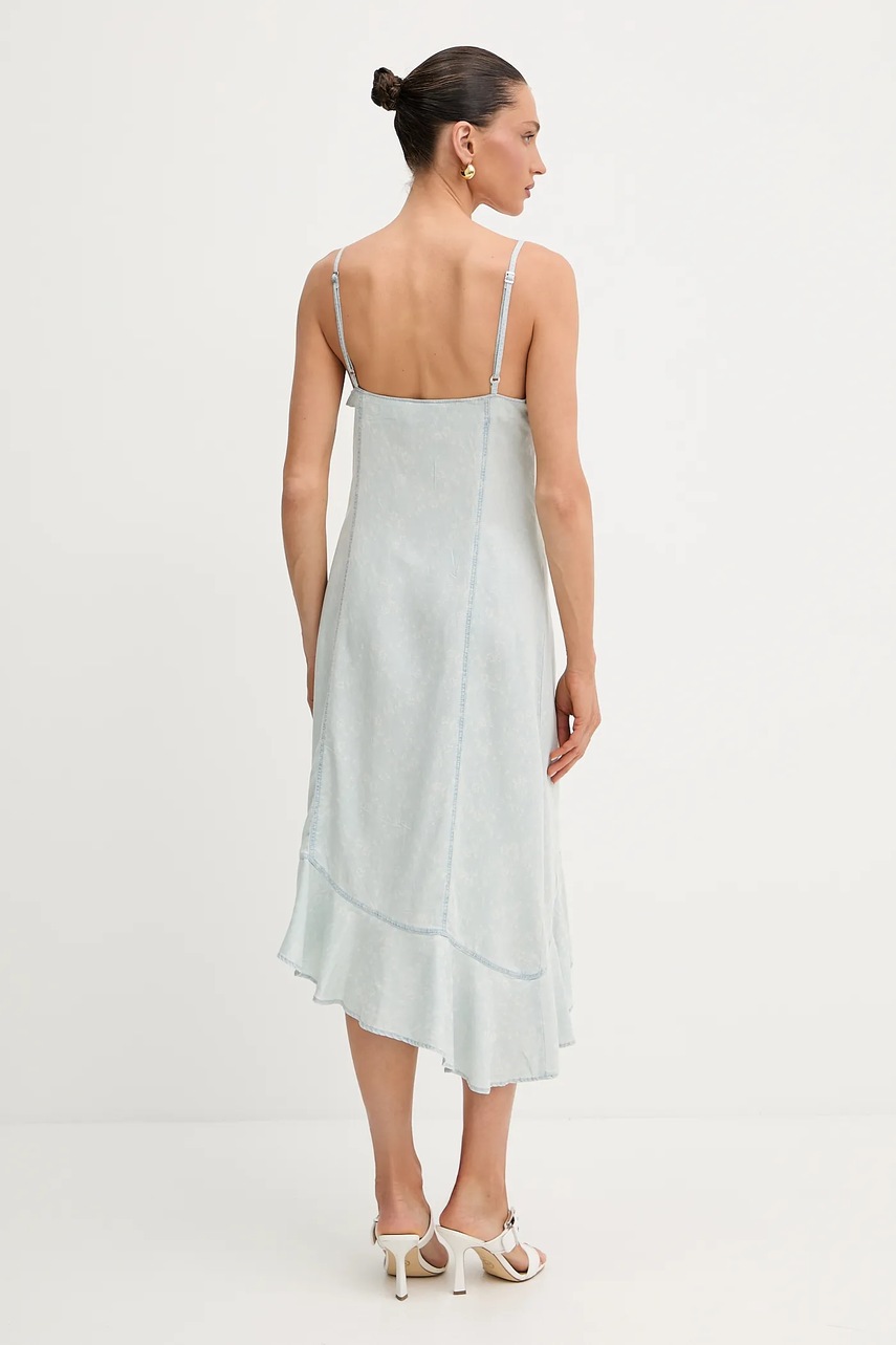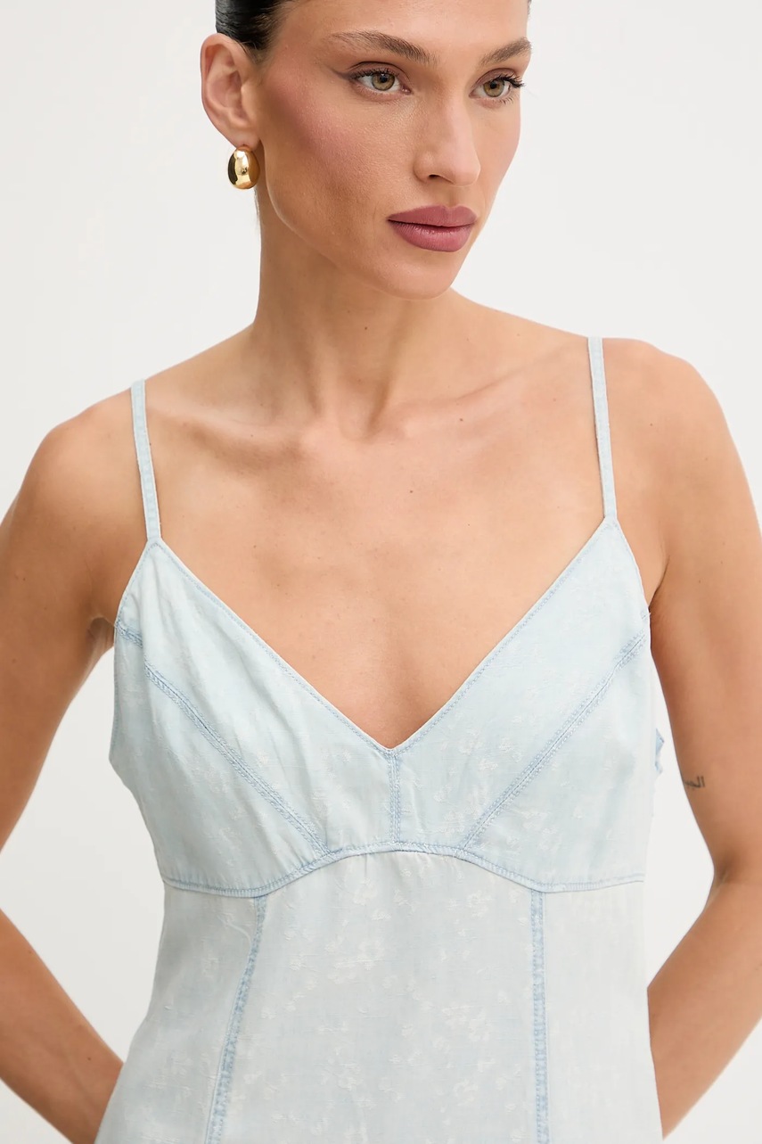 Guess sukienka z domieszką lnu FRANCISCA kolor niebieski mini rozkloszowana W5GK44 D5N81