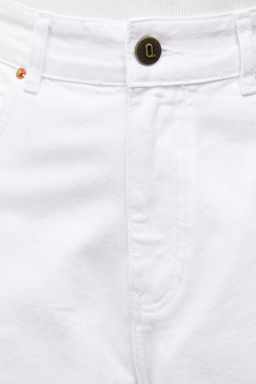 - Model z podwyższoną talią i zapięciem na guzik i suwak.