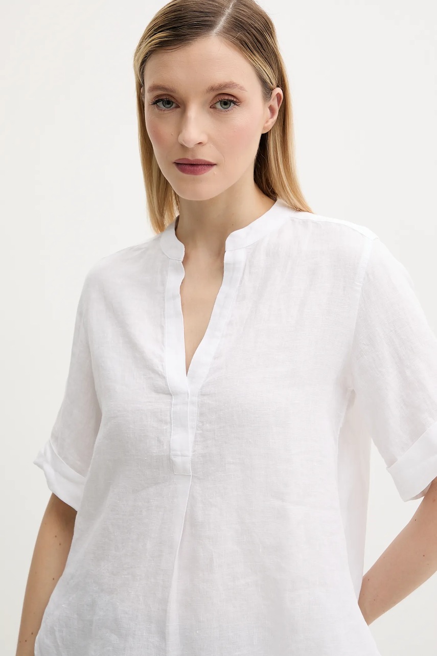 Marc O'Polo bluzka lniana damska kolor biały gładka 516113541069