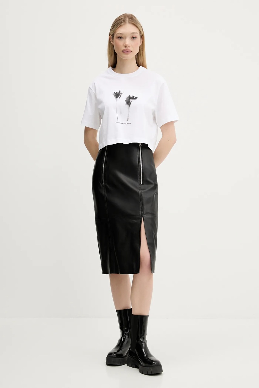 HUGO spódnica skórzana kolor czarny midi prosta 50542308