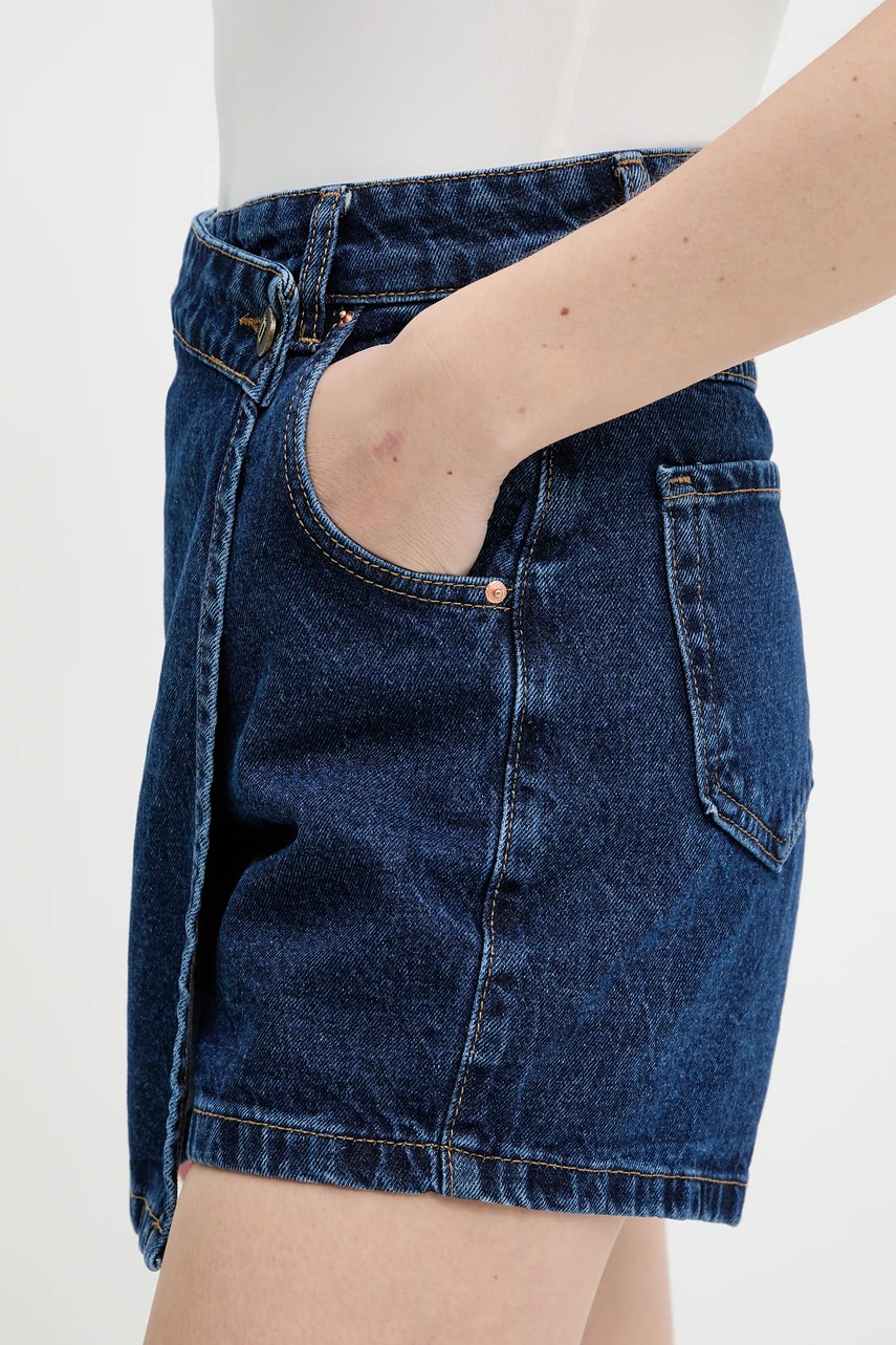 Answear.LAB szorty jeansowe damskie kolor granatowy gładkie high waist