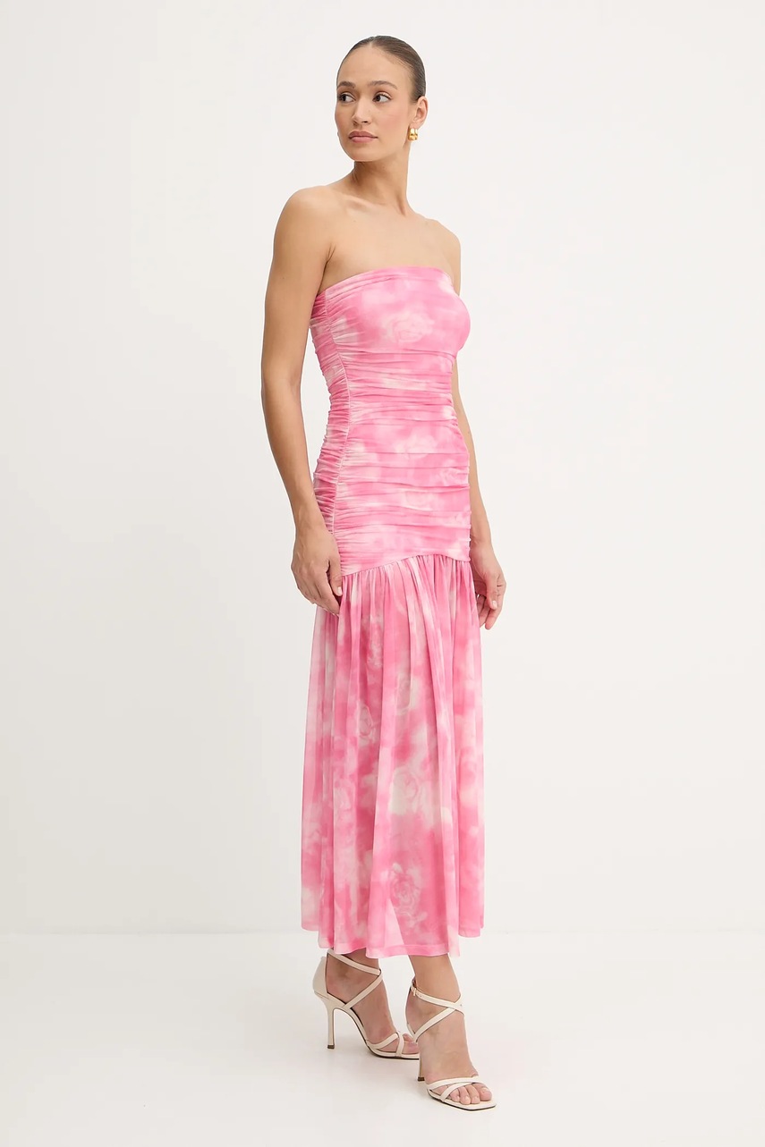 Bardot sukienka kolor różowy maxi rozkloszowana 59875DB1