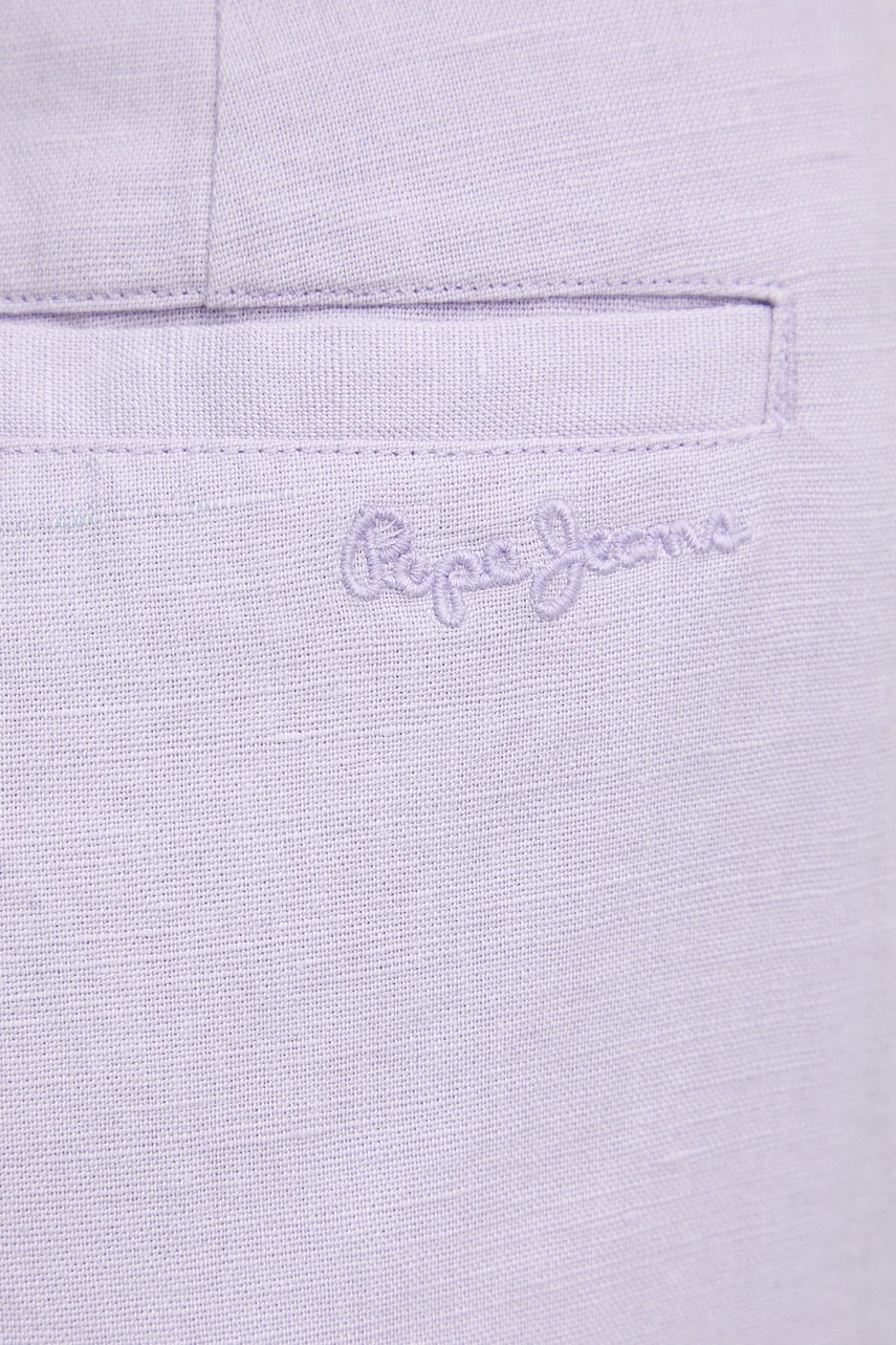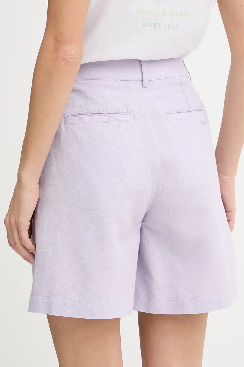 Pepe Jeans szorty lniane damskie kolor fioletowy gładkie high waist PL801198