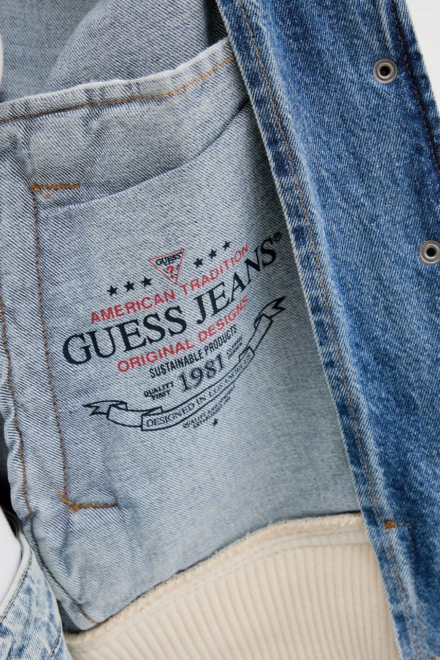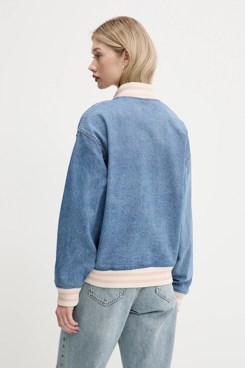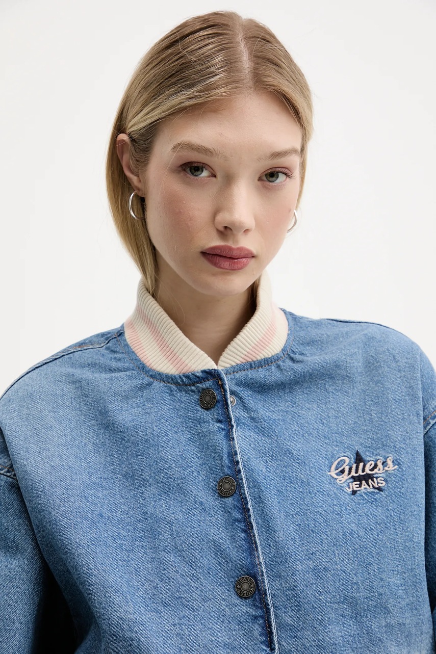 Guess Jeans kurtka bomber jeansowa kolor niebieski przejściowa oversize W5GN75 D5M4A