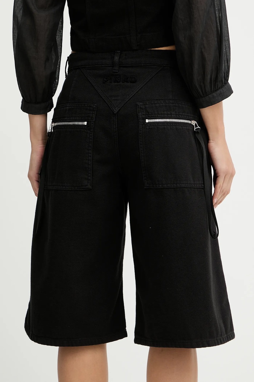 Pinko szorty bawełniane damskie kolor czarny gładkie high waist 105245 A2M8